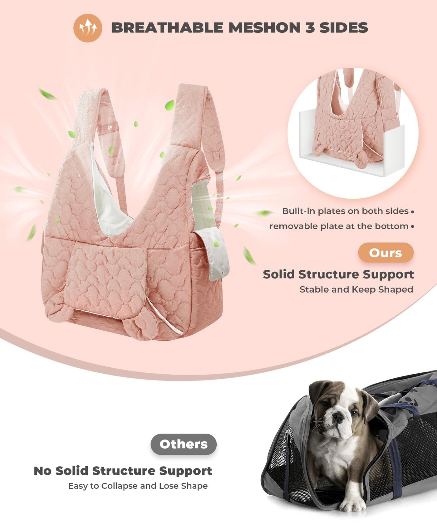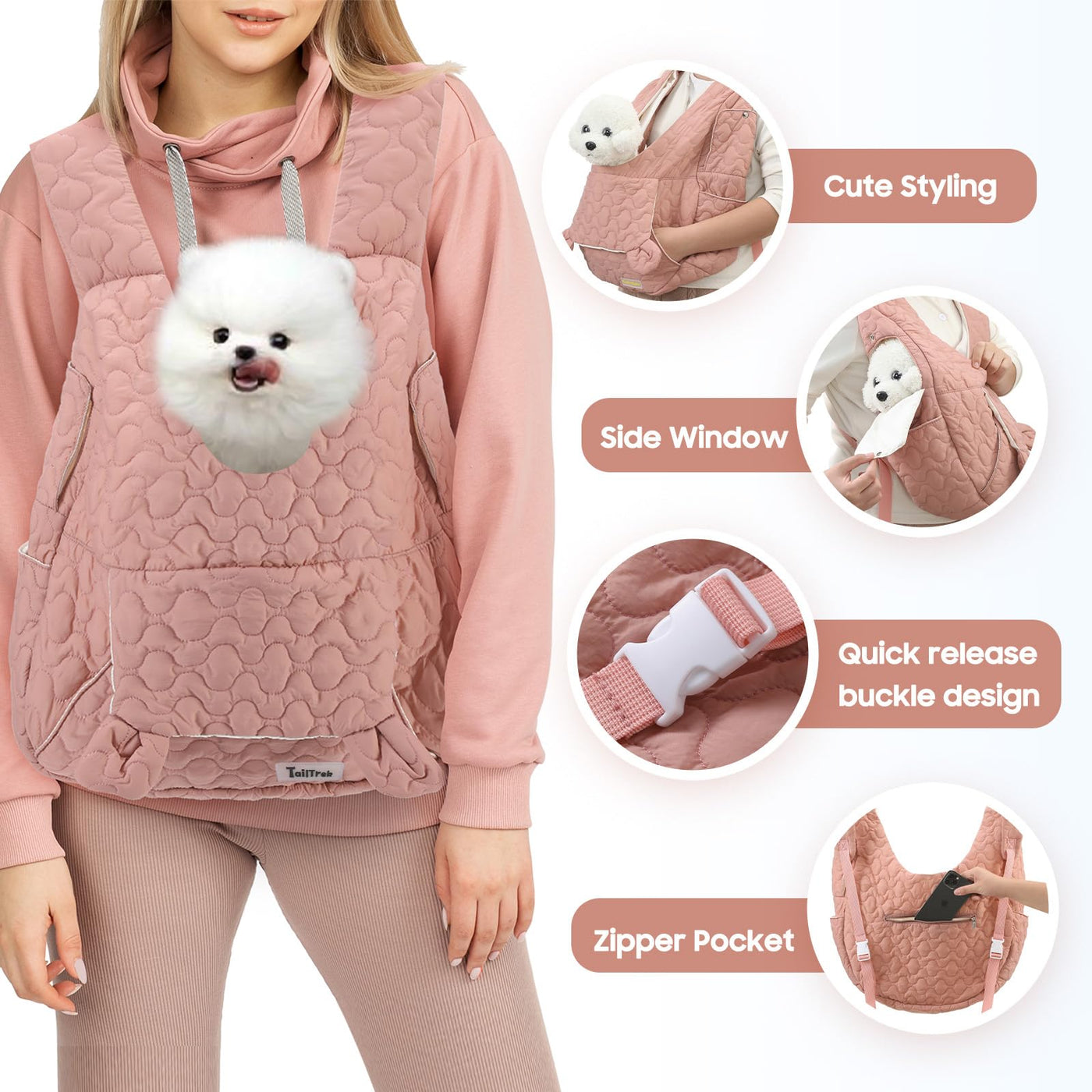 Our Pet Carrier Backpack is crafted from premium materials for unmatched comfort and durability. With padded side panels for added support, a removable bottom pad, and adjustable shoulder straps, this backpack ensures a cozy, secure ride for pets up to 13 pounds. Featuring safety elements like an integrated safety belt, breathable windows, and ample storage pockets, its the perfect choice for trips, hikes, and adventures with your small to medium-sized pet.