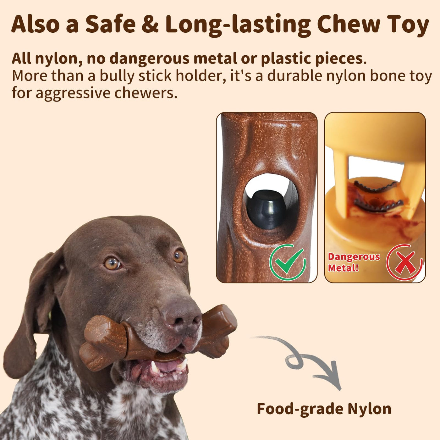 Joybruko Bully Stick Holder For Dogs - For Aggressive Chewers Treat Chew Holder, Heavy Duty Yak Chew Toy Nylon Bone, Prevent Cho