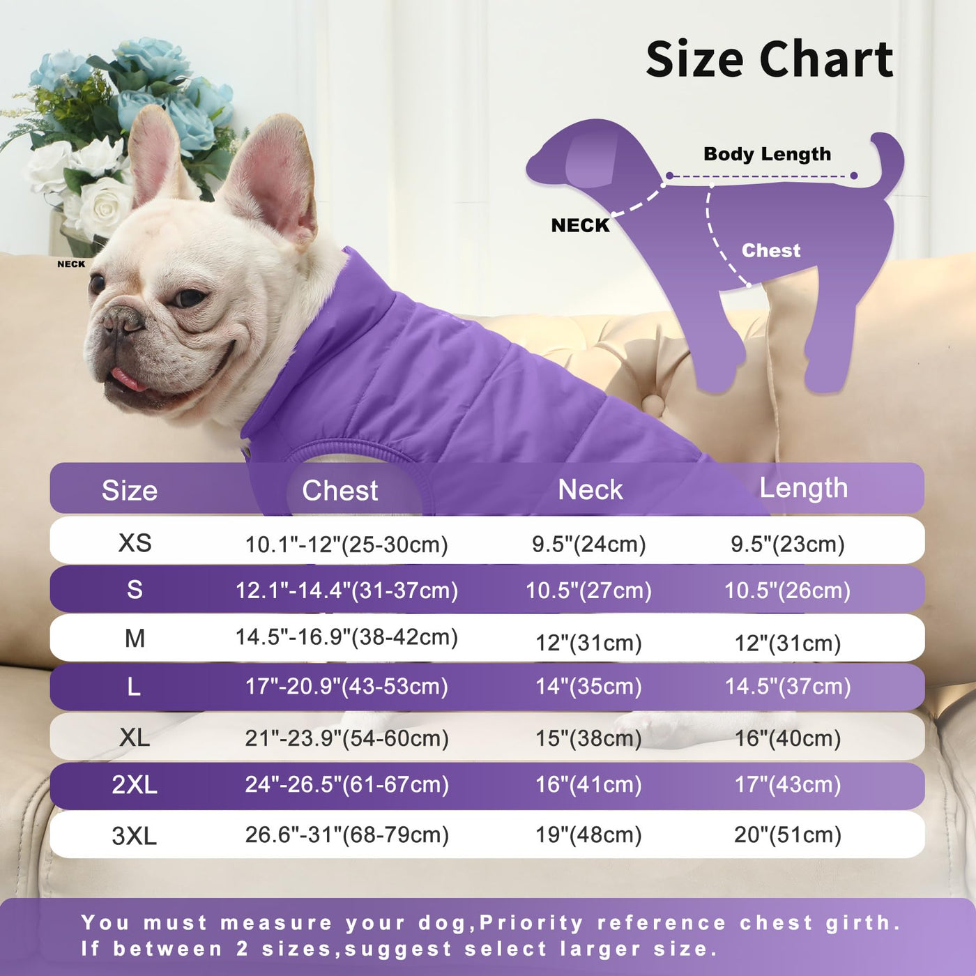 Joydaog 2 Layers Fleece Lined Warm Dog Jacket For Puppy Winter Cold Weather,Soft Windproof Small Dog Coat,Purple M