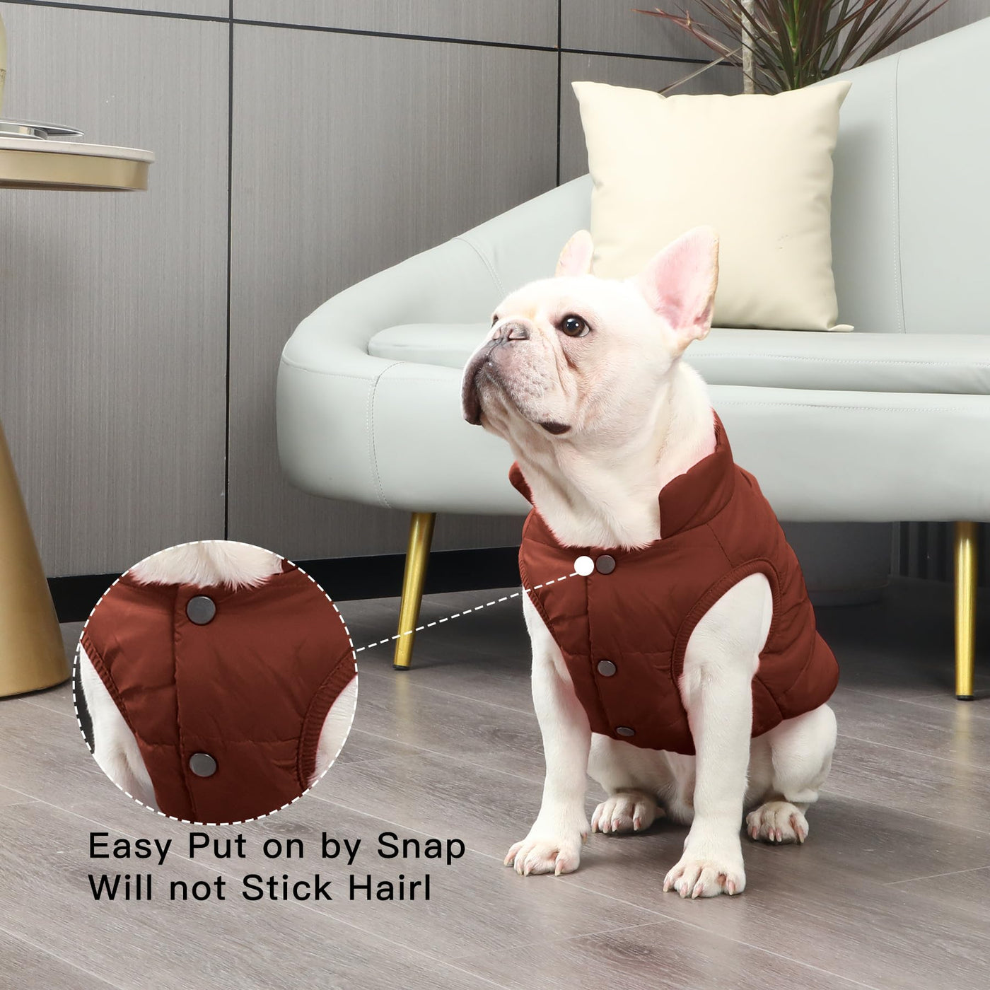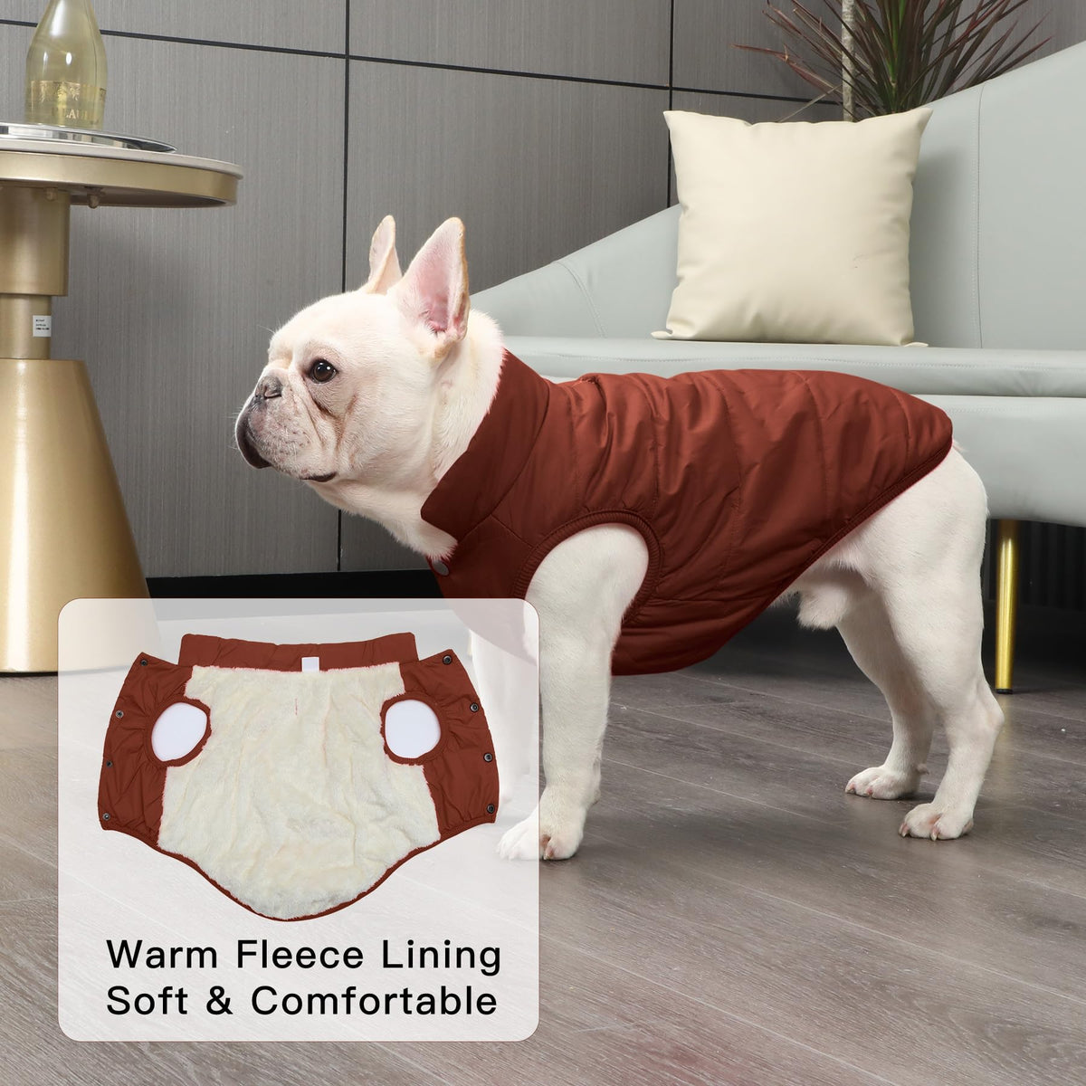 Material:Fleece Lined,Super Warm In Winter;Extra Soft Polyester Fabric,Windproof And Comfortable; Sturdy Stitches Process Dog'S Jacket,Easy Put On And Take Off With Metal Snaps. Leash Hole On Neck,Elastics Edges Of Foot And Waist; Features:Fashion,Durable,Lightweight,Wind-Proof,Soft Dog Coat; Colors:Brown Size Chart: Best For Small Dogs And Puppies, Note:Please Measure Your Dog Before Ordered,Priority To Reference Chest Girth(Don'T Too Tight When Measuring). Size Chart: Xs:Chest(10'-12'),Neck9.5',Length9.5' S:Chest(12.1'-14.4'),Neck10.5',Length10.5' M:Chest(14.5'-16.9'),Neck12',Length12' L:Chest(17'-20.9'),Neck14',Length14' Xl:Chest(21'-23.9'),Neck15',Length16' Xxl:Chest(24'-26.5'),Neck16',Length17' Xxxl:Chest(26.6'-31'),Neck19',Length20' Tips:If The Size Between 2 Sizes,Or If Your Dog Have A Stout Buid,Please Select Larger Size; Dog Jacket Is Also Called Dog Coat Warm In Winter