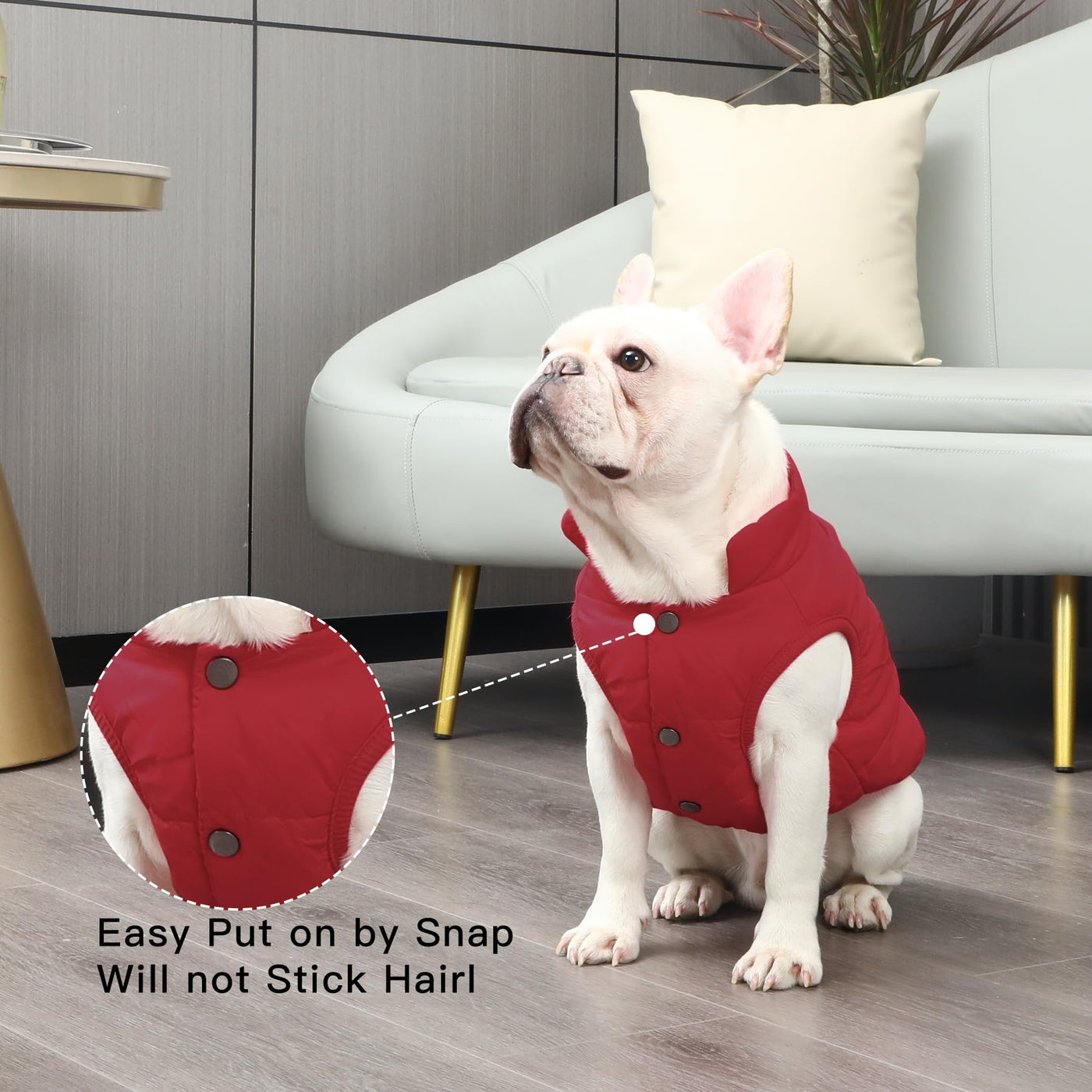 Size Xxxl:Chest(26.6''-31''),Neck19.5'',Length22'' Material: Fleece Lined,Super Warm In Winter;Extra Soft Polyester Fabric,Windproof And Comfortable; Sturdy Stitches Process Dog'S Jacket,Easy Put On And Take Off With Metal Snaps. Leash Hole On Neck,Elastics Edges Of Foot And Waist; Features:Fashion,Durable,Lightweight,Wind-Proof,Soft Dog Coat; Colors:Red Size Chart: Best For Small Dogs And Puppies, Note:Please Measure Your Dog Before Order,Priority To Reference Chest Girth(Don'T Too Tight When Measuring). Size Chart: Xs:Chest(10''-12''),Neck9.5'',Length9.5'' S:Chest(12.1''-14.4''),Neck10.5'',Length10.5'' M:Chest(14.5''-16.9''),Neck12'',Length12'' L:Chest(17''-20.9''),Neck14'',Length14'' Xl:Chest(21''-23.9''),Neck15'',Length16'' Xxl:Chest(24''-26.5''),Neck16'',Length17'' Xxxl:Chest(26.6''-31''),Neck19'',Length20'' Tips:If The Size Between 2 Sizes,Or If Your Dog Have A Stout Buid,Please Select Larger Size; Dog Jacket Is Also Called Dog Coat Warm In Winter