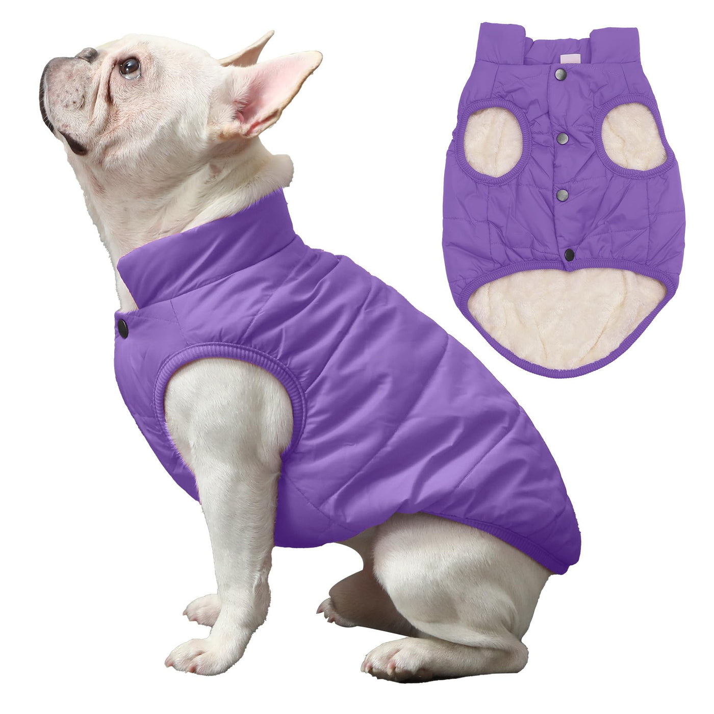 Joydaog 2 Layers Fleece Lined Warm Dog Jacket For Winter Cold Weather,Soft Windproof Medium Dog Coat,Purple L