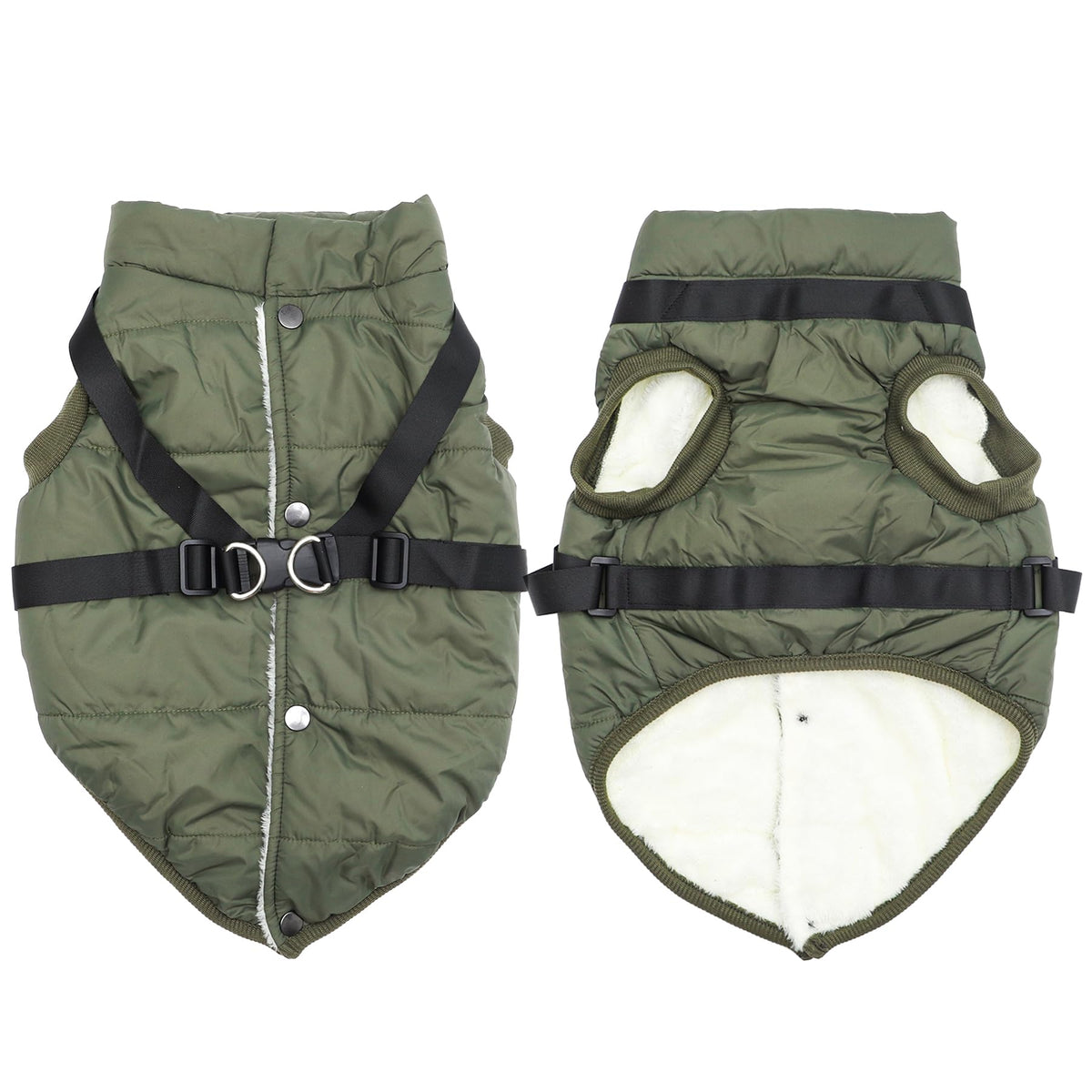 Dog Coat With Strong Harness Built In, The Harness Is Around On The Coat'S Chest And Waist,Evenly Dispersed The Force; Adjustable Harnesss Size By The Strap; Material: Soft Fleece Lined,Super Warm In Cold Winter; Extra Soft Polyester Fabric,Windproof And Comfortable; Easy Put On And Take Off By Metal Snaps; Elastics Edges Of Foot And Waist,More Comfortable; Leash Hole On The Back; Features: Lightweight,Wind-Proof,Durable,Soft Dog Coat; Sturdy Stitches Process Dog'S Jacket. Size Chart: Note:You Must Measure Your Dog,Reference Size Chart,Priority Reference Chest Girth. If The Size Is Between In 2 Sizes,Suggest Select Larger Size. Xs:Chest10''-12.5''(26-31.9Cm),Neck9.5''(24Cm),Length9.5''(23Cm) S:Chest12.6''-15''(32-37.9Cm),Neck10.5''(27Cm),Length10.5''(26Cm) M:Chest15.1''-17.5''(38-44.9Cm),Neck12''(31Cm),Length12''(31Cm) L:Chest17.6''-21.5''(45-54.9Cm),Neck14''(35Cm),Length14.5''(37Cm) Xl:Chest21.6''-249''(55-60.9Cm),Neck15''(38Cm),Length16''(40Cm) Xxl:Chest24''-26.5''(61-66.9Cm),Neck16''(41Cm),Length17''(43Cm) Xxxl:Chest26.6''-31''(67-79Cm),Neck19''(48Cm),Length20''(51Cm)