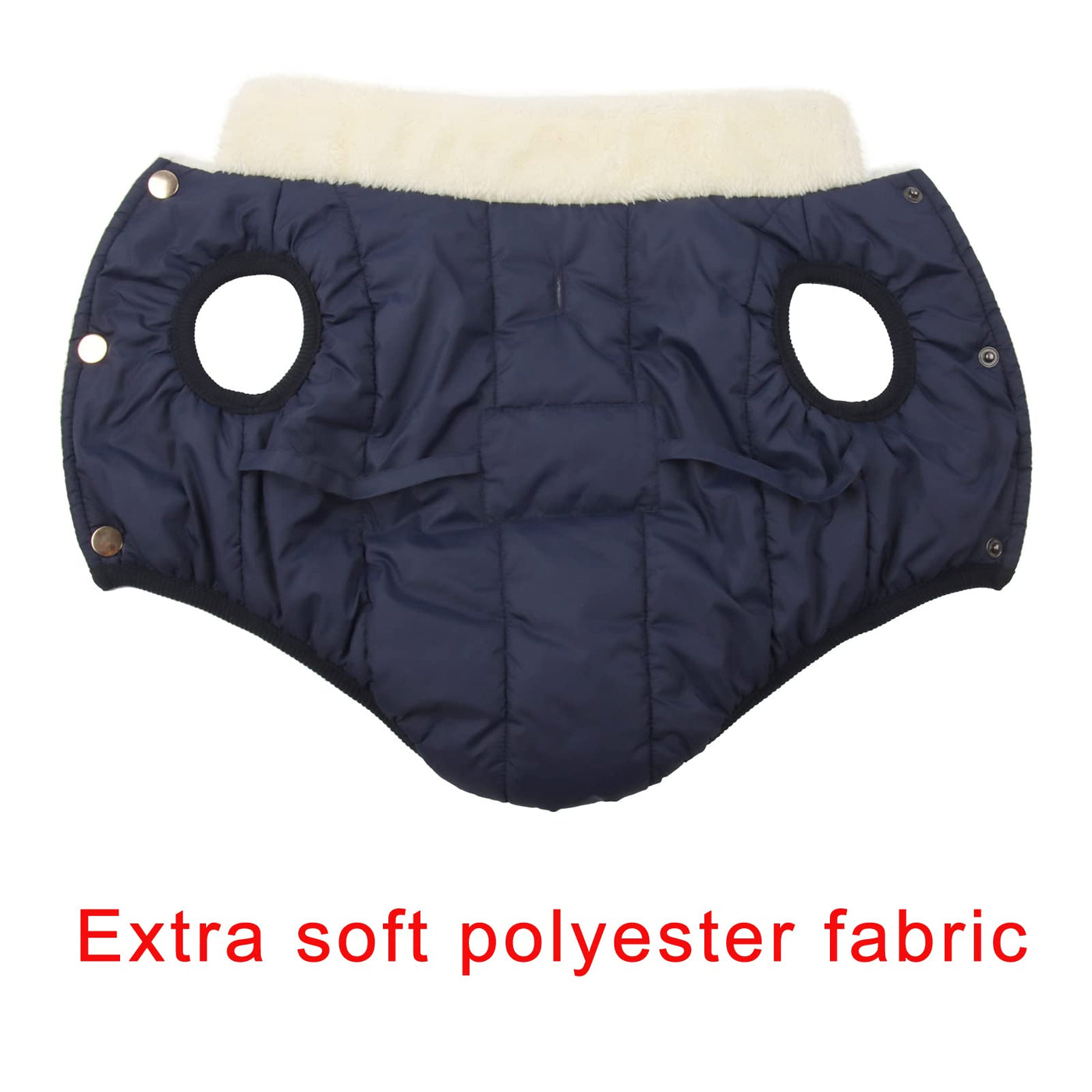 Symmetrical Bar Design On Back,White Fleece On The Neck; Material:Fleece Lined,Super Warm In Winter;Extra Soft Polyester Fabric,Windproof And Comfortable; Sturdy Stitches Process Dog'S Jacket,Easy Put On And Take Off With Metal Snaps. Leash Hole On Neck; Features:Fashion,Durable,Lightweight,Wind-Proof,Soft Dog Coat; Colors:Blue Size Chart: Xs:Chest(10''-12''),Neck9.5'',Length9.5'' S:Chest(12.1''-14.4''),Neck10.5'',Length10.5'' M:Chest(14.5''-16.9''),Neck12'',Length12'' L:Chest(17''-20.9''),Neck14'',Length14'' Xl:Chest(21''-23.9''),Neck15'',Length16'' Xxl:Chest(24''-26.9''),Neck16'',Length17'' Xxxl:Chest(27''-31''),Neck19'',Length20'' Note:Please Measure Your Dog Before Order,Priority To Reference Chest Girth(Don'T Too Tight When Measuring). Tips:If The Size Between 2 Sizes,Or If Your Dog Have A Stout Buid,Please Select Larger Size; Best For Small Dogs And Puppies,Dog Jacket Is Also Called Dog Coat Warm In Winter