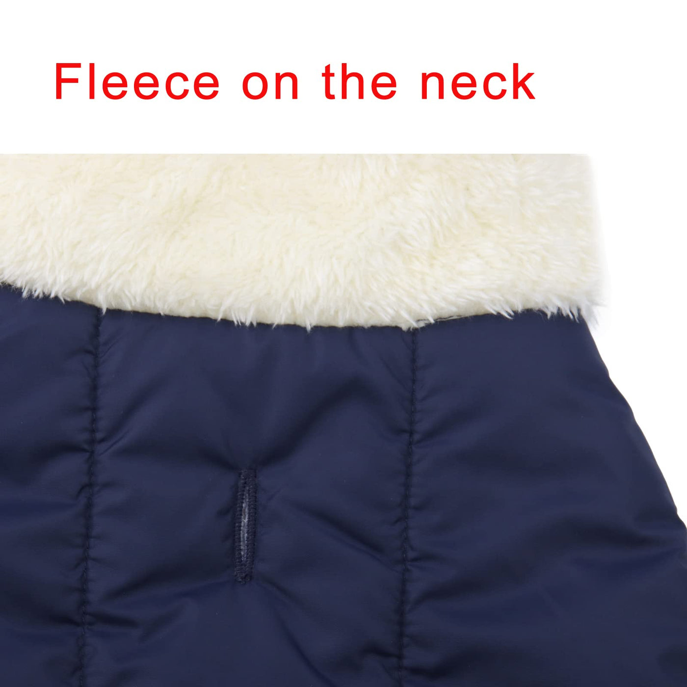 Symmetrical Bar Design On Back,White Fleece On The Neck; Material:Fleece Lined,Super Warm In Winter;Extra Soft Polyester Fabric,Windproof And Comfortable; Sturdy Stitches Process Dog'S Jacket,Easy Put On And Take Off With Metal Snaps. Leash Hole On Neck; Features:Fashion,Durable,Lightweight,Wind-Proof,Soft Dog Coat; Colors:Blue Size Chart: Xs:Chest(10''-12''),Neck9.5'',Length9.5'' S:Chest(12.1''-14.4''),Neck10.5'',Length10.5'' M:Chest(14.5''-16.9''),Neck12'',Length12'' L:Chest(17''-20.9''),Neck14'',Length14'' Xl:Chest(21''-23.9''),Neck15'',Length16'' Xxl:Chest(24''-26.9''),Neck16'',Length17'' Xxxl:Chest(27''-31''),Neck19'',Length20'' Note:Please Measure Your Dog Before Order,Priority To Reference Chest Girth(Don'T Too Tight When Measuring). Tips:If The Size Between 2 Sizes,Or If Your Dog Have A Stout Buid,Please Select Larger Size; Best For Small Dogs And Puppies,Dog Jacket Is Also Called Dog Coat Warm In Winter
