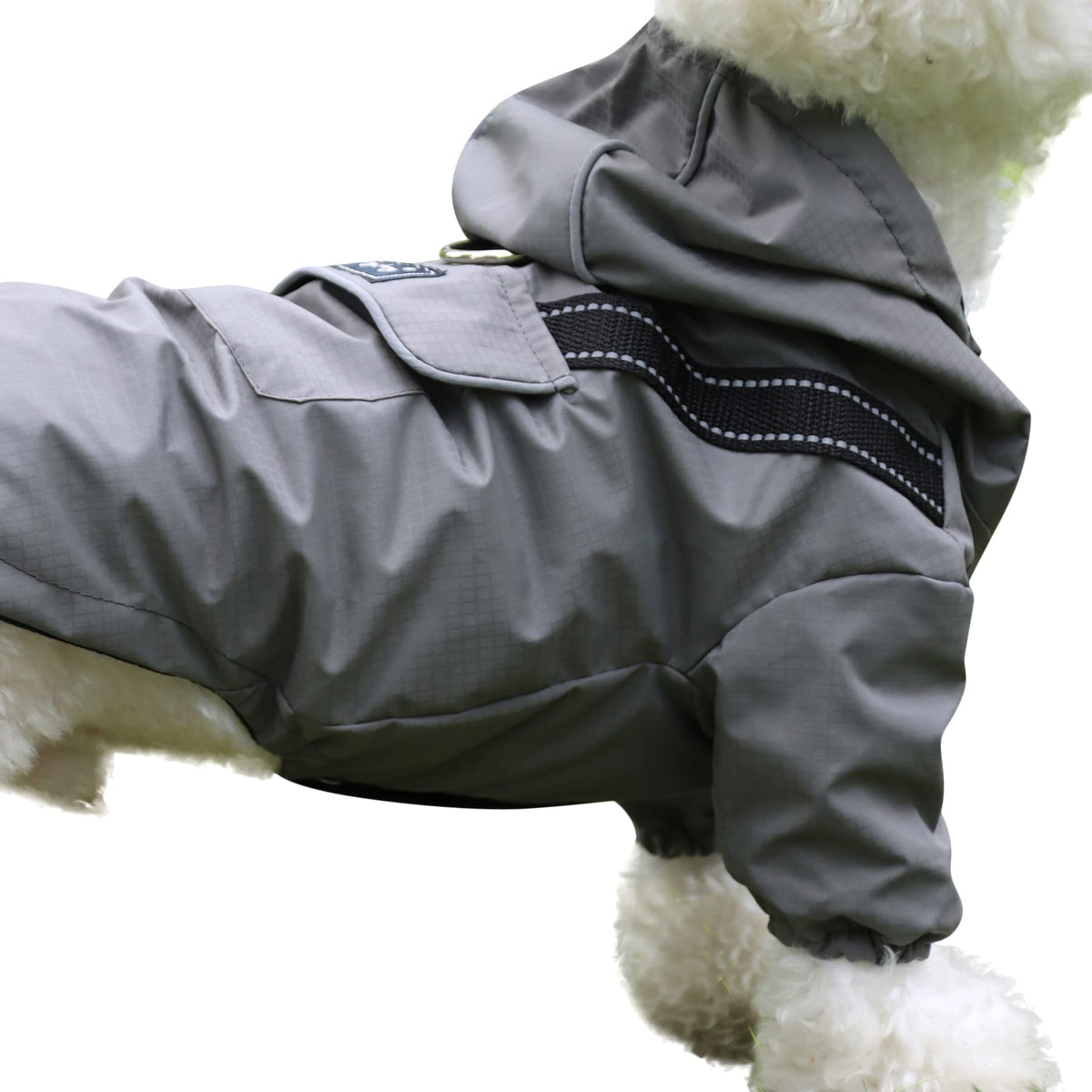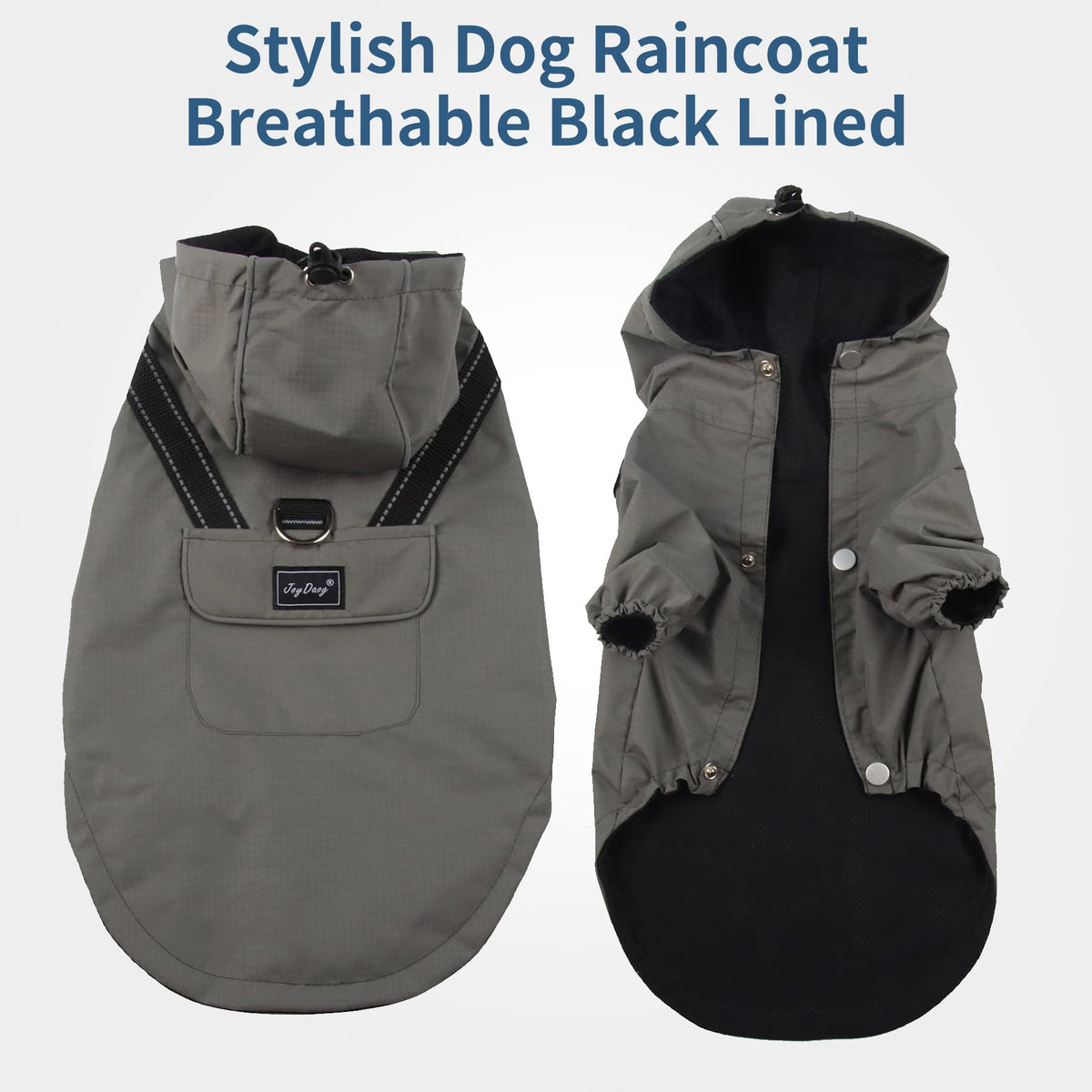Joydaog Dog Raincoat Can Prevent Your Dog Get Wet In The Rain,Prevent To Cause Skin Disease And Have To Cold Etc. Features: Stylish Dog Raincoat Desgin,Metal Buttons; D-Ring Decoration, Suitable For Small Dogs To Assist In Towing, Not Suitable For Large Dogs The Pockets In The Back For Easy Hold Dog'S Poop Bags,Bonus Snacks Etc. Fashion V Shape Reflective Strap On Back; Premium Waterproof Fabric,Breathable Black Lined,2 Front Legs Desgin Keep Your Dogs Warm And Dry In Wet Cold Weather. More Safer,High Visible Straps At Night;Easy Put On & Off; More Comfortable,Adjustable Drawstring On Head,Elastic Edges At Front Legs And Belly; Color:Grey; Size Chart: Note:Please Measure Your Dog Before Order,Reference Size Chart,Then Priority Reference The Chest Girth. Xs:Chest 9.5''-12''(25-31Cm),Neck 9.5''(24Cm),Length 10''(25Cm); S:Chest 12.1''-14''(31.1-36Cm),Neck 11.5''(29Cm),Length 12''(29Cm); M:Chest 14.1''-17''(36.1-43Cm),Neck 13''(33Cm),Length 13.5''(34Cm); L:Chest 17.1''-20''(43.1-51Cm),Neck 14.5''(37Cm),Length 15''(37Cm); Xl:Chest 20.1''-23''(51.1-59Cm),Neck 16''(41Cm),Length 16.5''(42Cm);