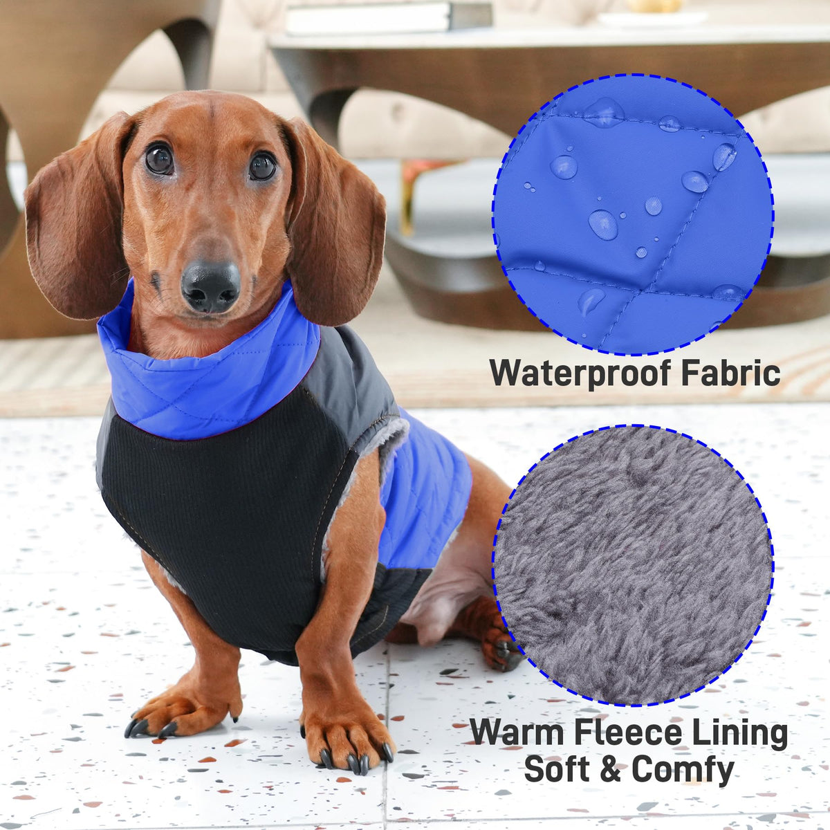 News Fleece Dog Coat,Fashion & Warm;Wearing Our Dog Jackets,Your Dog Will Be Warmer And More Beautiful In Cold Weather Winter/Snow. Features: 1,Fleece Lined,Soft And Comfort,It Is More Warmer In Cold Weather Winter/Snow; 2,High Quality Waterproof Fabric; 3,Fashion Desgin,Blue And Grey Stylish Colorblocking; 4,2 D-Rings On The Back,Easier Connection To Dog Leashes; 5,Zipper Desgin On Back,Easy To Put On And Take Off; 6,Hand Washable & Machine Washable; 7,Abdominal Elastic Design For More Comfort; 8,Reflective Strip Is Brighter At Night; 9,Fashion,Durable,Waterproof,Light Weight,Wind-Proof Dog Jacket; Size Chart: Xs:Chest(10'-12.5'),Neck 9.5',Length 9.5'; S:Chest(12.6'-15.9'),Neck 11.5',Length 11.5'; M:Chest(16'-17.9'),Neck 13.5',Length 13.5'; L:Chest(18'-21.9'),Neck 15.5',Length 15.5'; Xl:Chest(22'-24.9'),Neck 17.5',Length 17.5'; Xxl:Chest(25'-29.9'),Neck 20',Length 20'; Xxxl:Chest(30'-34.5'),Neck 23',Length 23'; Note:Please Must Measure Your Dog Before Order,Priority To Reference Chest Girth(Don'T Too Tight When Measuring).
