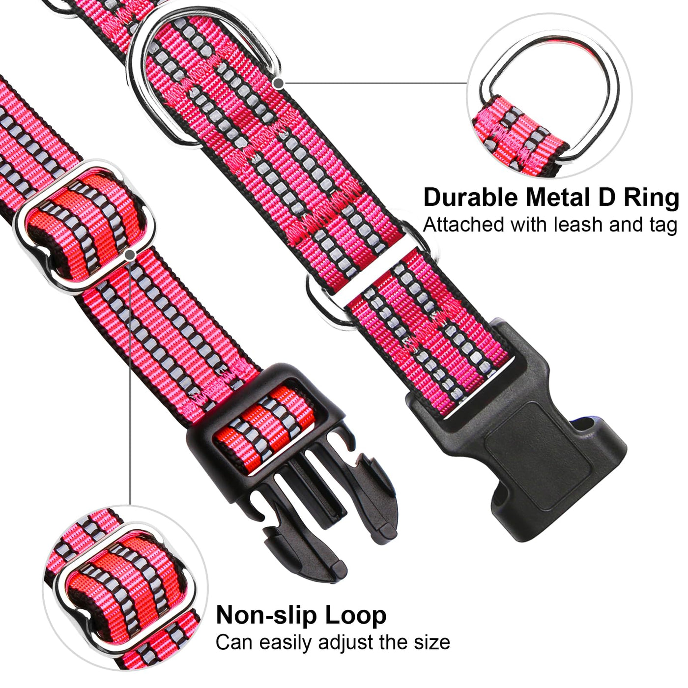 Joyeeiioo Martingale Dog Collar, Adjustable Nylon Reflective Collar With Quick Release Buckle (Hot Pink, Extra Large)