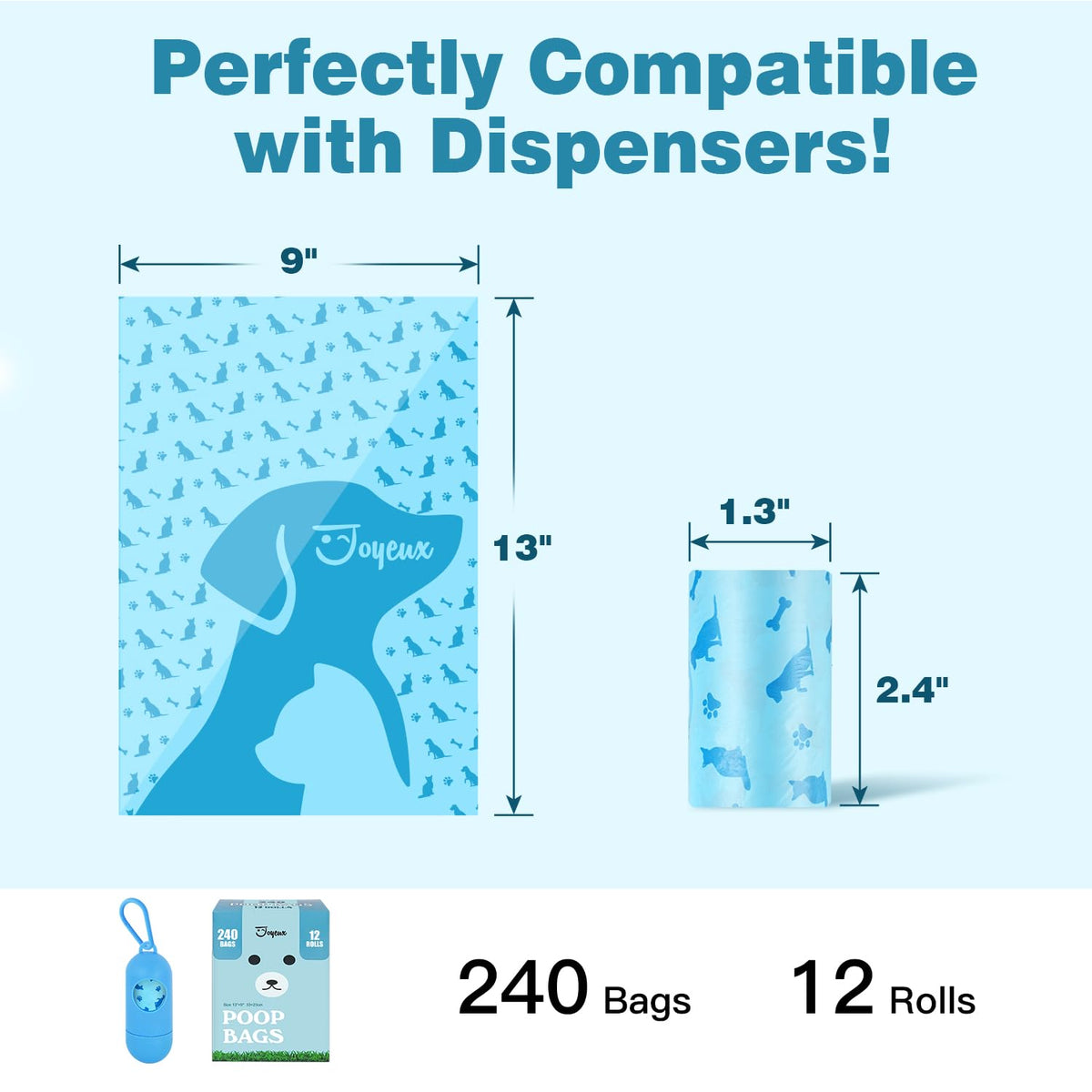 Joyeux 240 Count Ocean Scent Dog Poop Bags Rolls,With Dispenser,Leak-Proof Large Doggie,Extra Thick Poop Bag For Dogs,Cats Litte