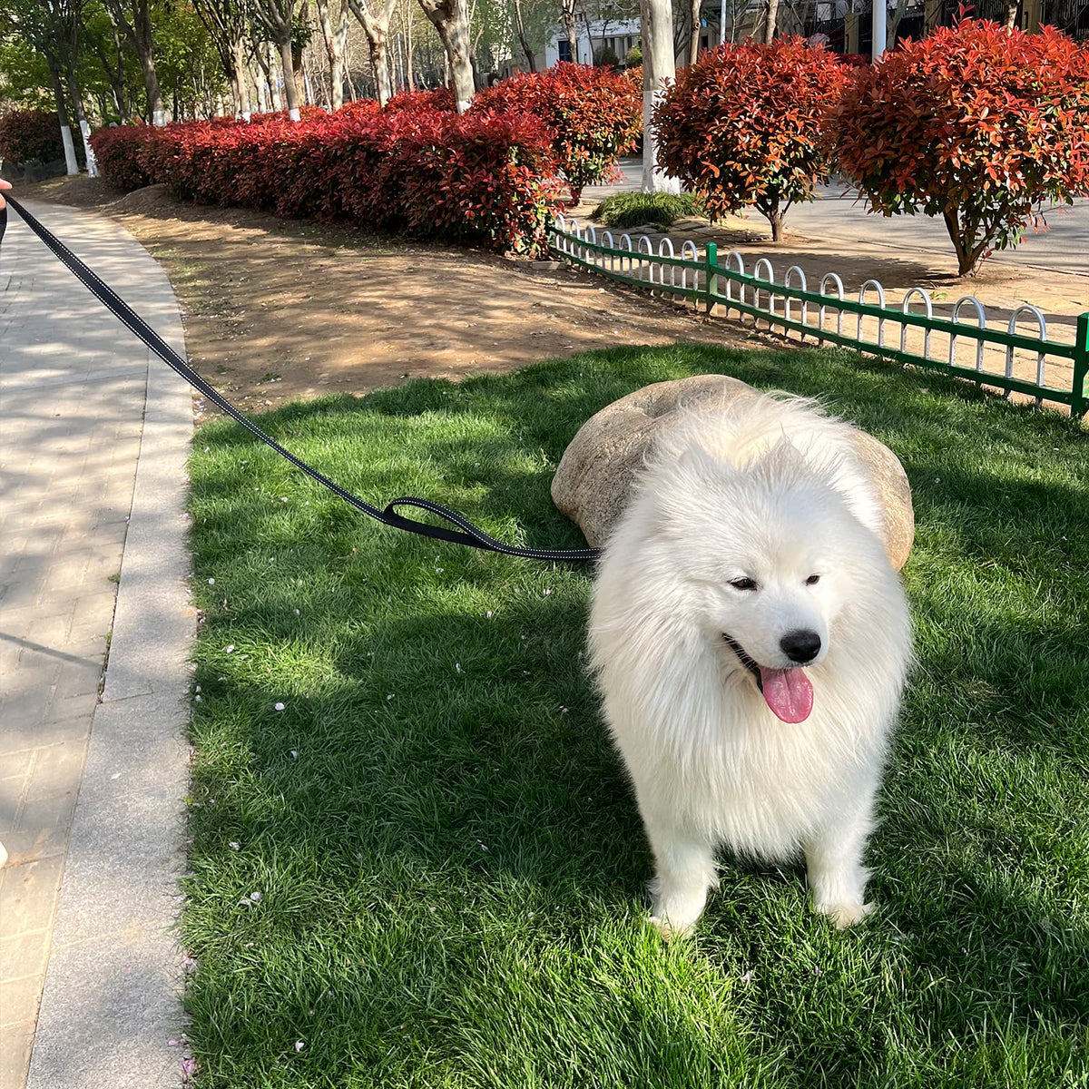 Q: Can I use this leash for medium-sized dogs as well?A: Absolutely! The Joytale Dog Leash is 1 inch wide and thick enough to suit both medium and large dogs, making it a versatile option for various breeds.