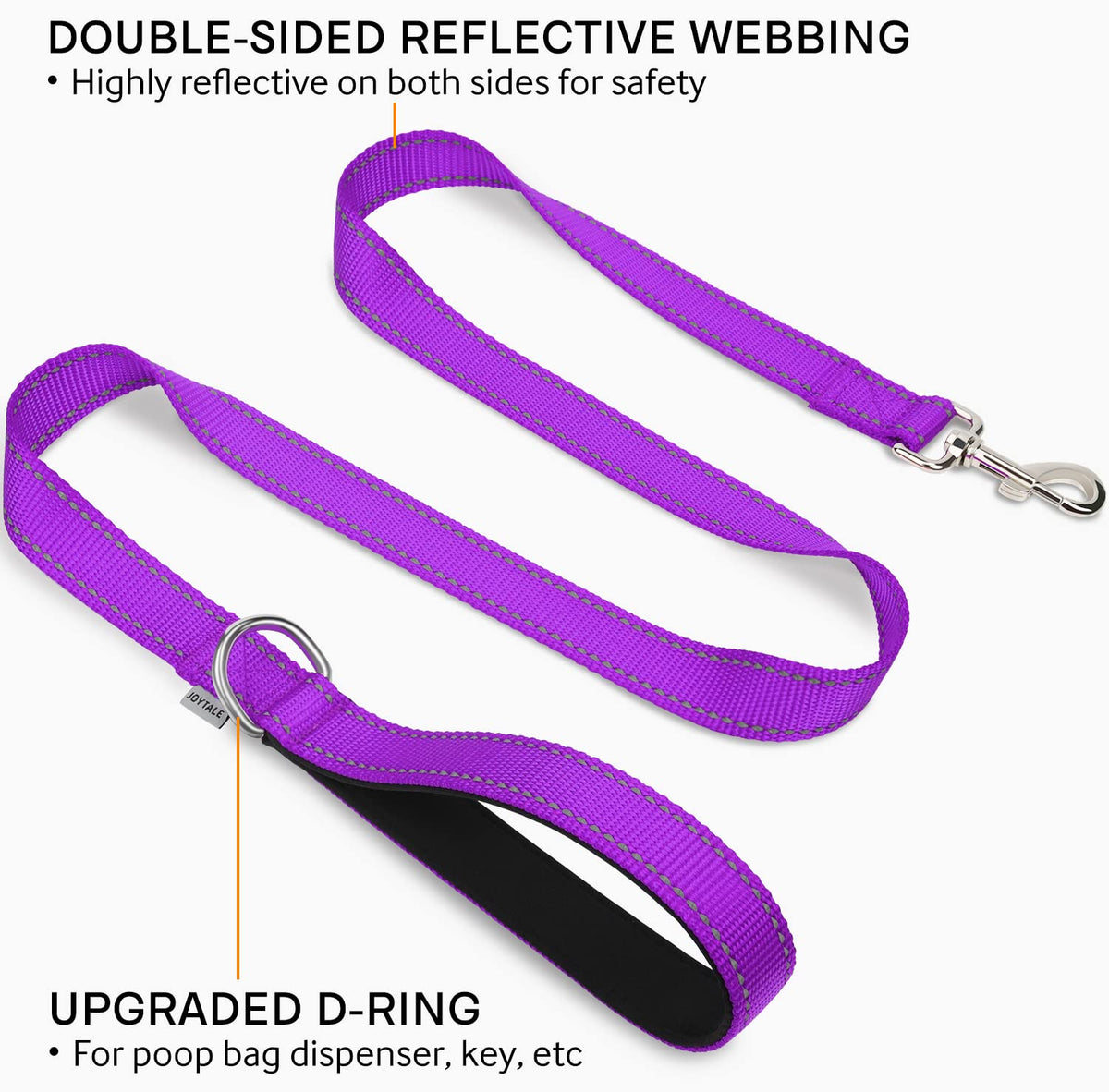 Joytale Double-Sided Reflective Dog Leash, 6 Ft/5 Ft/4 Ft, Padded Handle Nylon Dogs Leashes For Medium & Large Dogs Walking, Pur