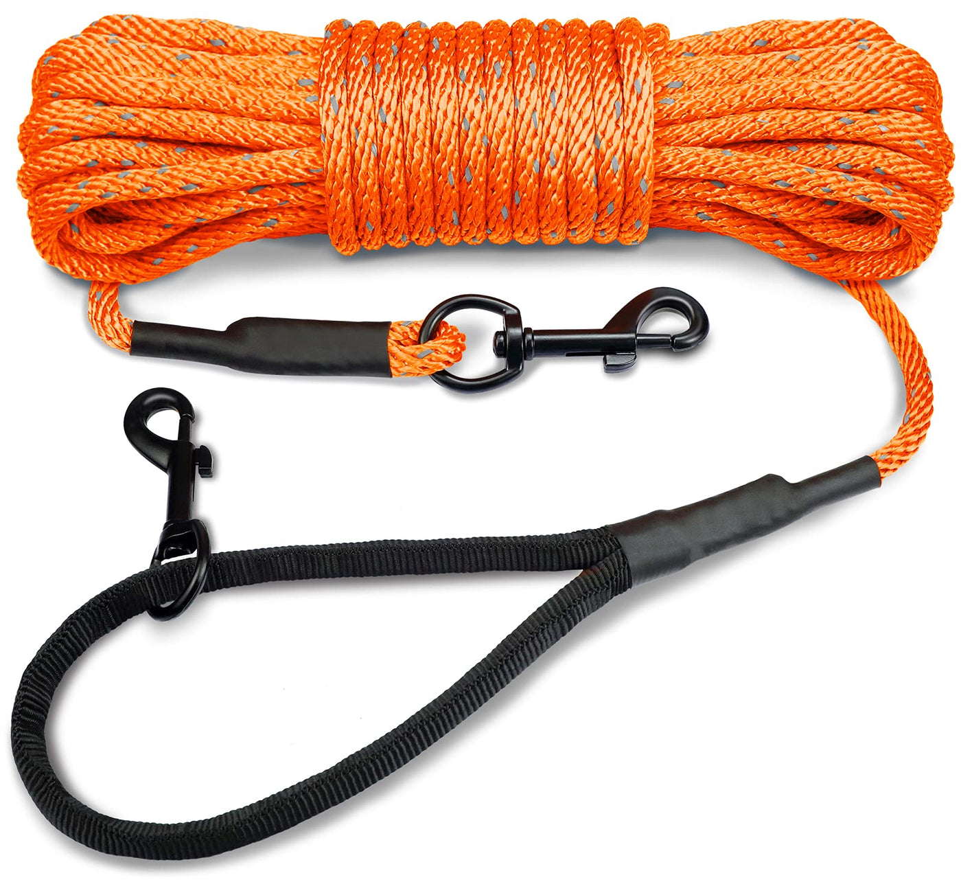 Q: What is the length of the Joytale Long Dog Training Leash?A: The Joytale Long Dog Training Leash is available in multiple lengths, including 15 feet, 30 feet, and 50 feet, allowing you to choose the best option for your training needs.