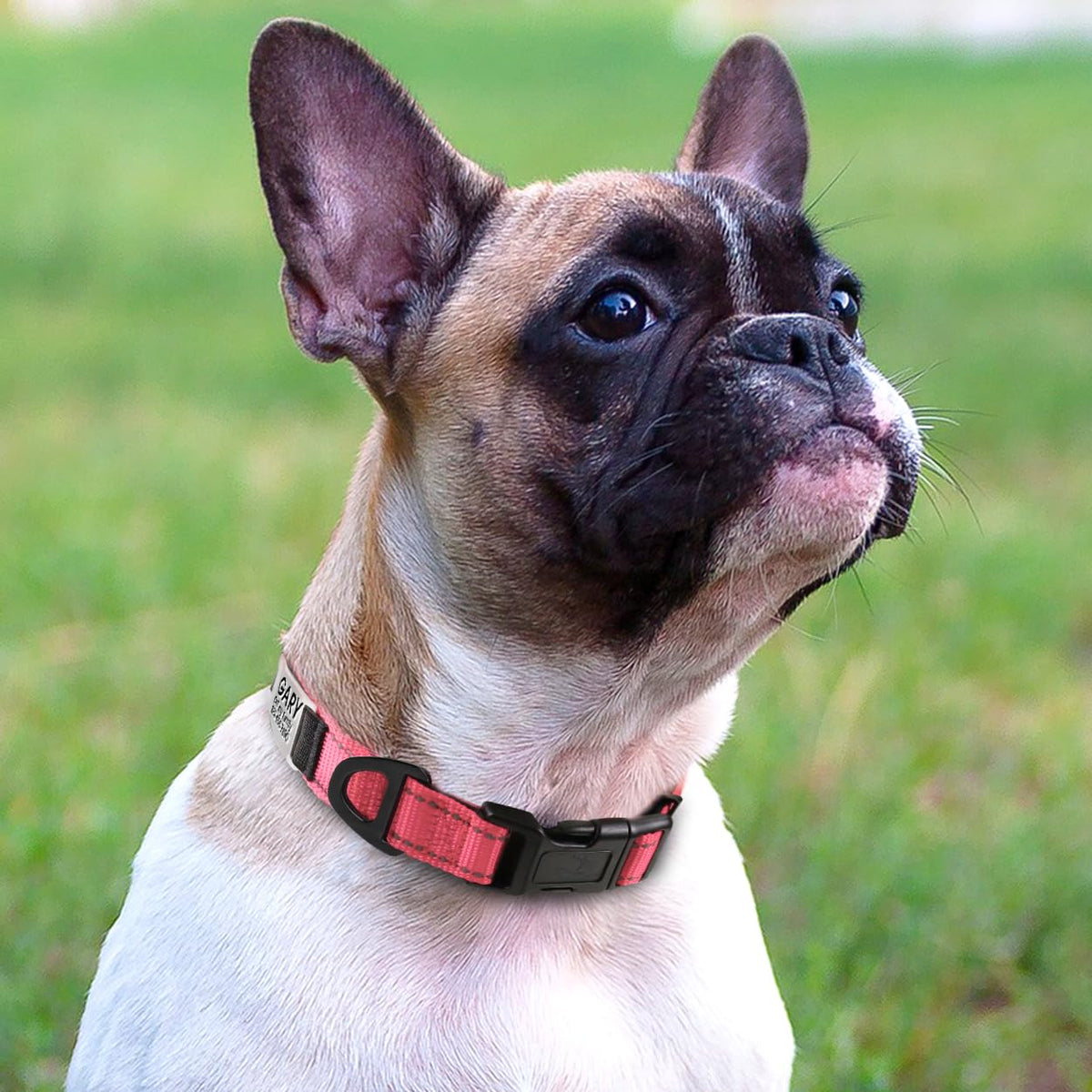 Joytale Personalized Dog Collars, Reflective Nylon Dog Collar With Engraved Name Plate, Customized For Puppy And Small Dogs, Pink, Xs