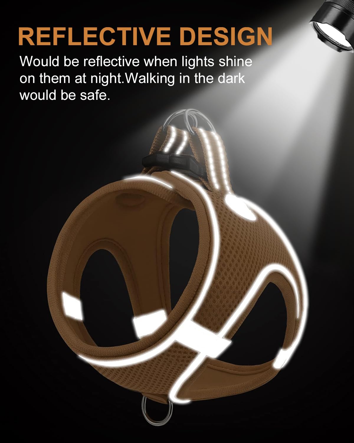Joytale Small Dog Harness, Breathable Mesh Step-In Vest, Reflective Soft Padded Harnesses For Cats And Puppies Dogs, Brown, Xxxs