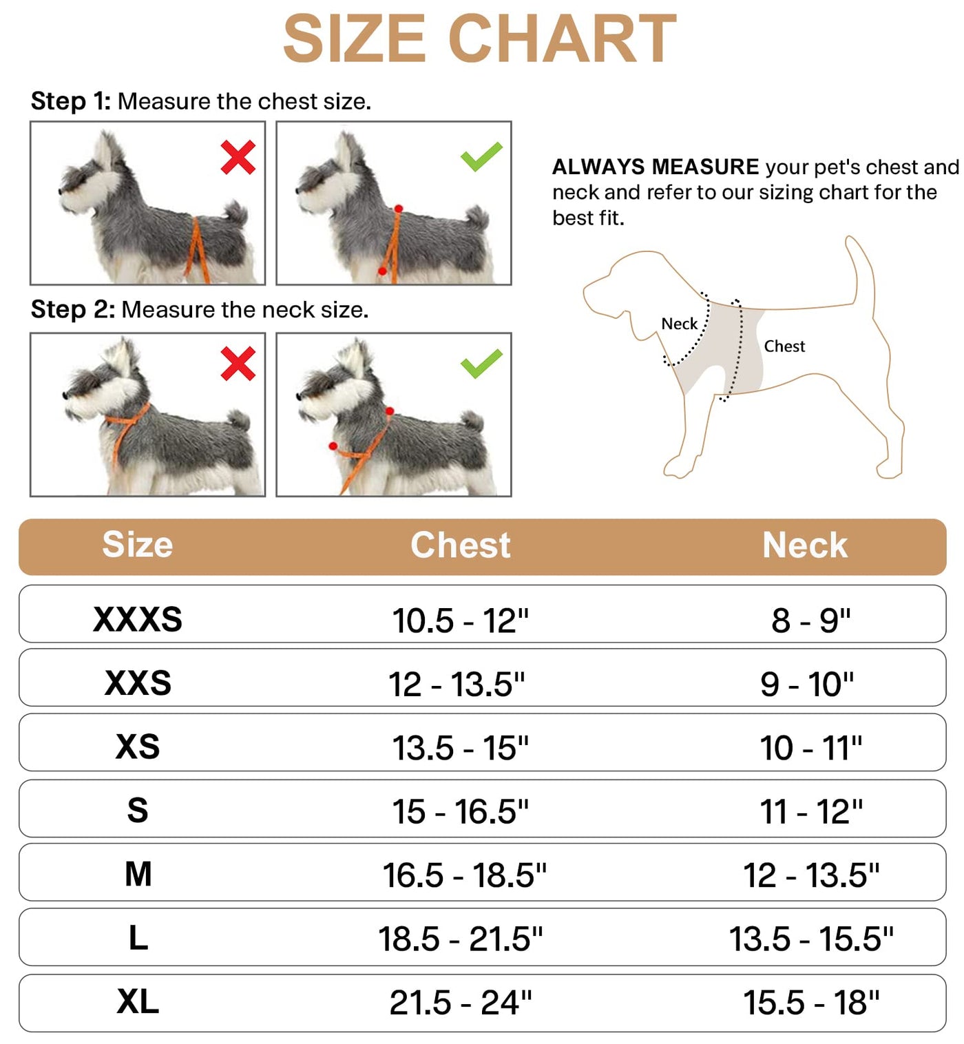 Size Guide: It is highly recommended to measure the widest part of your pet 's chest and neck and refer the size chart before placing an order. Avoid choosing the size by weight alone. It is ideal for extra-small small and medium breeds