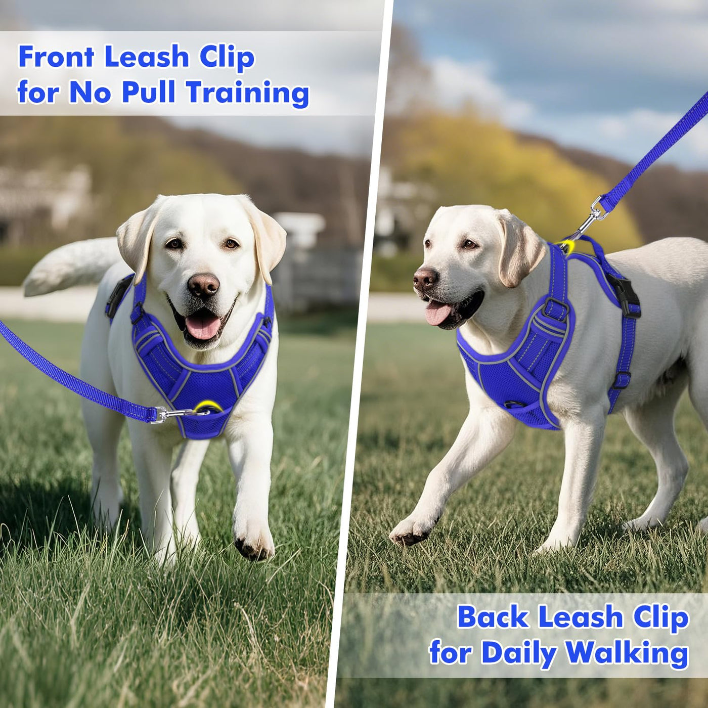 Q: How does the no-pull feature work on this harness?A: The no-pull feature of this harness works by utilizing a D-ring at the front, which redirects your dog's movement when they attempt to pull. This helps to discourage pulling behavior during walks.