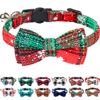 Joytale Upgraded Christmas Cat Collar With Bells, Breakaway Cat Collars With Bow Tie, 1 Pack Girl Boy Safety Plaid Kitten Collar
