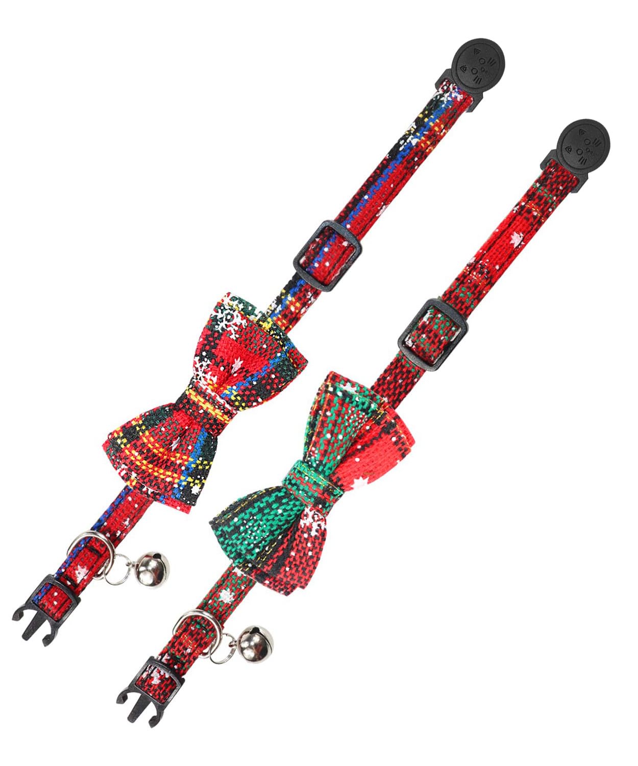 Includes: Christmas Collars 2 Size: Adjustable From 7-11 Inch Features: Breakaway Clasp For Safety Adjustable Slide Buckle Ensures A Perfect Fit Features A Removable Bowtie For Added Flair Includes A D-Ring For Attaching Id Tags Attached Jingle Bell Helps You Locate Your Kitten
