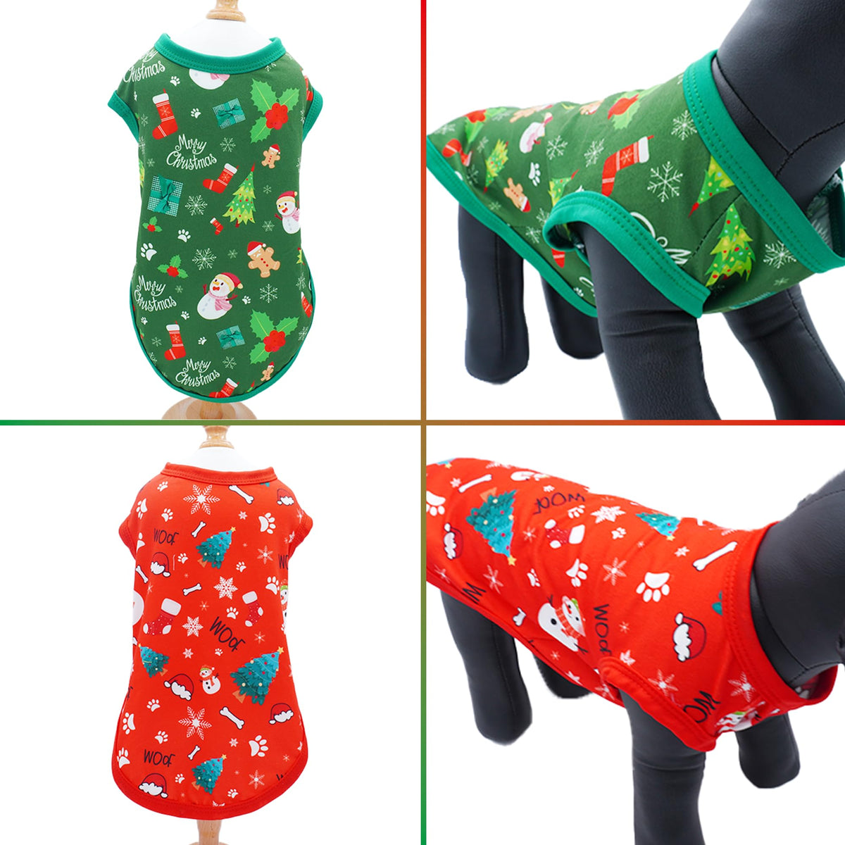 Christmas Dog Shirt Package: You Will Receve 2Pcs Christmas T Shirt Clothes In Green Red Color For Both Boy And Girl Dog.Dog Shirt Size:There Are 7 Different Size From Xs S M L To Xl Xxl Xxxl For Choice;Please Measure The Chest Girth And Back Length Of Your Pet, And Refer To The Size Chart Before Ordering;&Nbsp;If The Size Of The Pet Is Close To The Upper Limit Of The Size Chart, Please Choose A Larger Size.Dog Shirts Material:The Dog Cute Shirts Are Made Of Light Soft And Breathable Fabric With Nice Comfort, Coupled With A Smooth Surface To Touch, Providing Your Pet With Cosy And Comfortable Wearing Experience.Christmas&Nbsp;Dog Shirts Pattern: Our Christmas Dog Shirts Are Printed With A Variety Of Christmas Designs On The Surface, Such As Snowman,Christmas Tree,Paw Print,Christmas Hat,Christmas Stocking And Other Christmas Elements, Full Of Festive Atmosphere, The Ideal Way To Dress Up Your Pets On Christmas Day.Wide Occasions: This Soft Puppy Shirts Can Be Worn For Daily Wear, Walking, Sports, Family, Travel And Other Outdoor Activities; Christmas Parties,Taking Photos And Vacations, Charming Apparel For Every Pet Wardrobe.