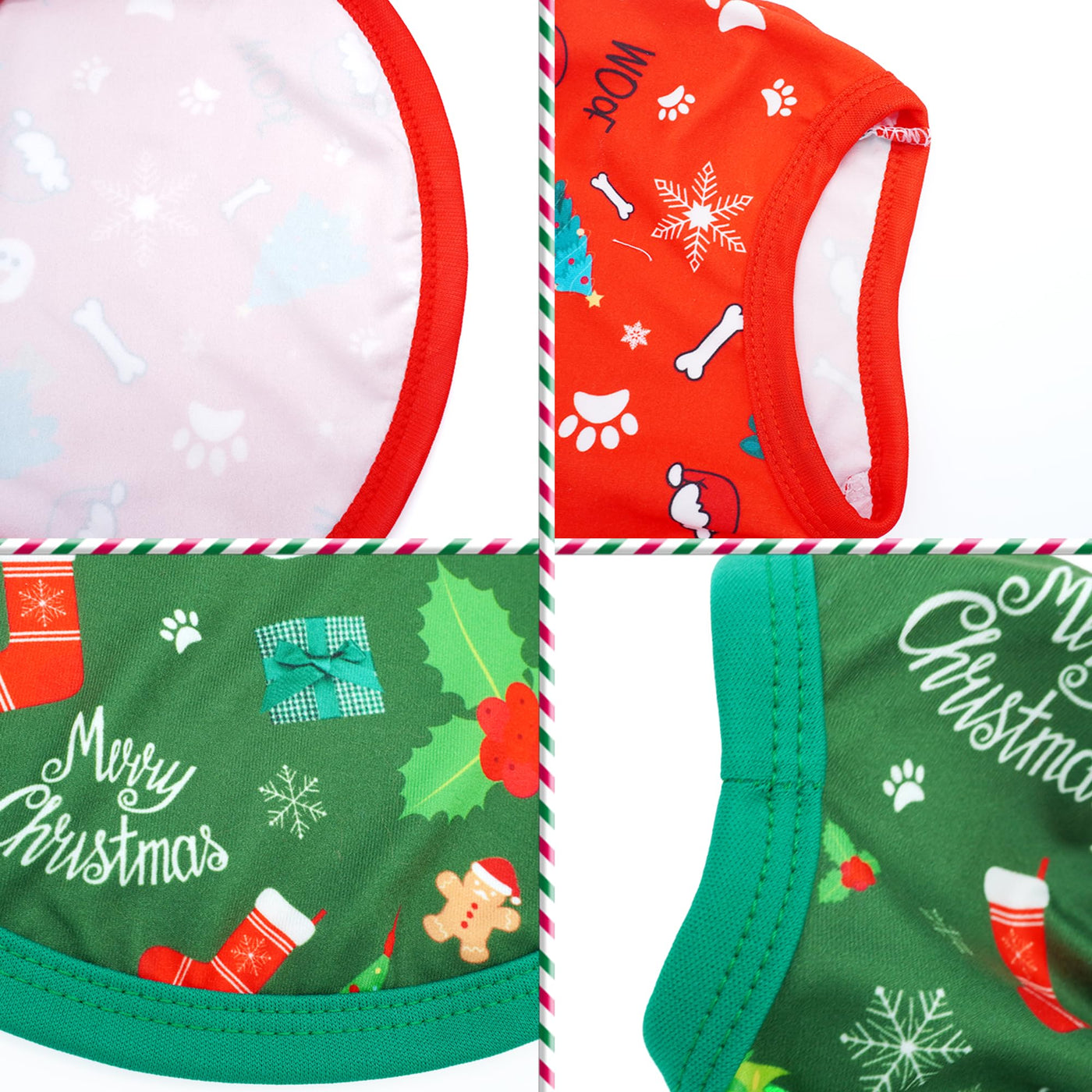 Jpgdn 2Pcs/Pack Christmas Dog Shirts Sleeveless Vest For Large Dog Red Green Vest Light Soft Breathable Outfit Paw Print Snowman