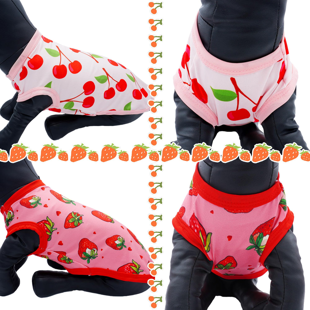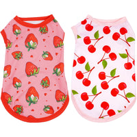 Jpgdn 2Pcs/Pack Dog Shirts Sleeveless For Medium Breed Dog Girl Pink Red Strawberry Cherry Print Puppy Clothes Vest Outfit Light