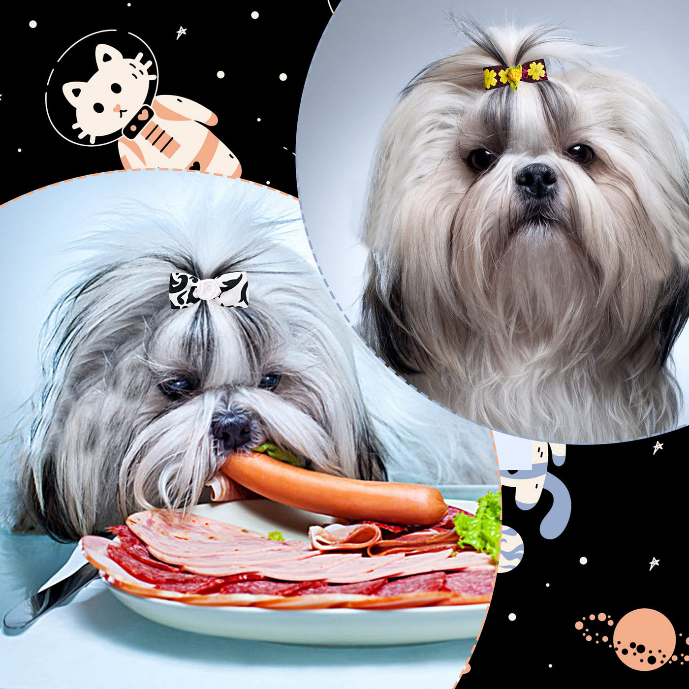 Dog hair bows black: You will receive 30pcs/15pairs randomstyles black dog hair bows Soft and silky, non-toxic, and durable,comfortable for your pet.