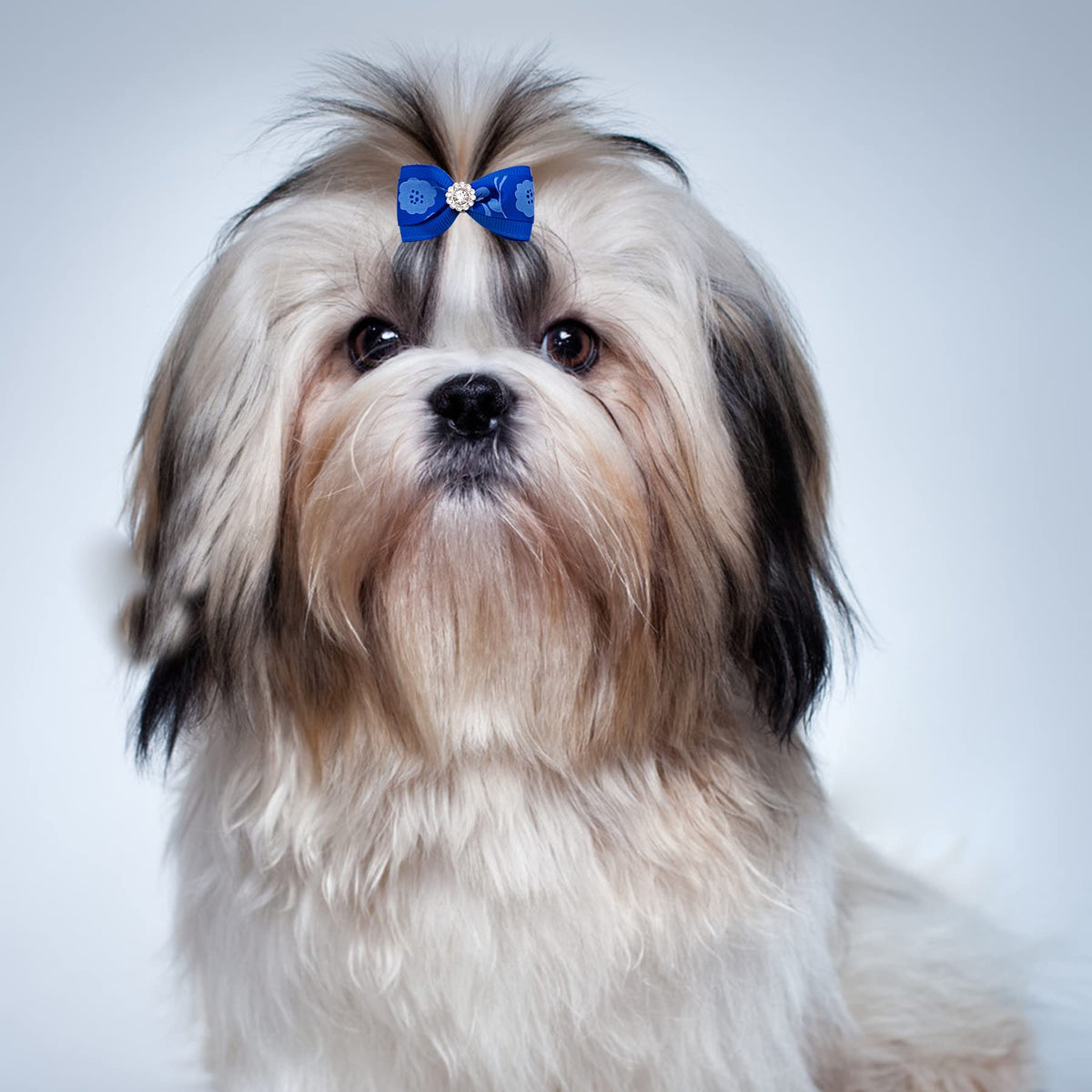 Dog hair bows blue: You will receive 30pcs/15pairs randomstyles blue dog hair bows Soft and silky, non-toxic, and durable,comfortable for your pet.