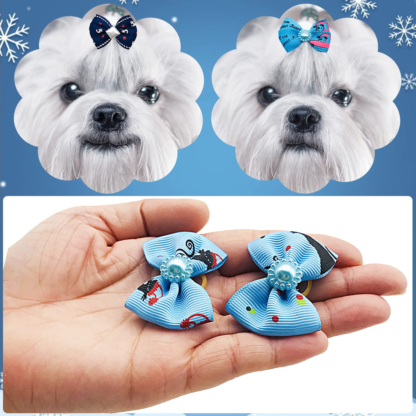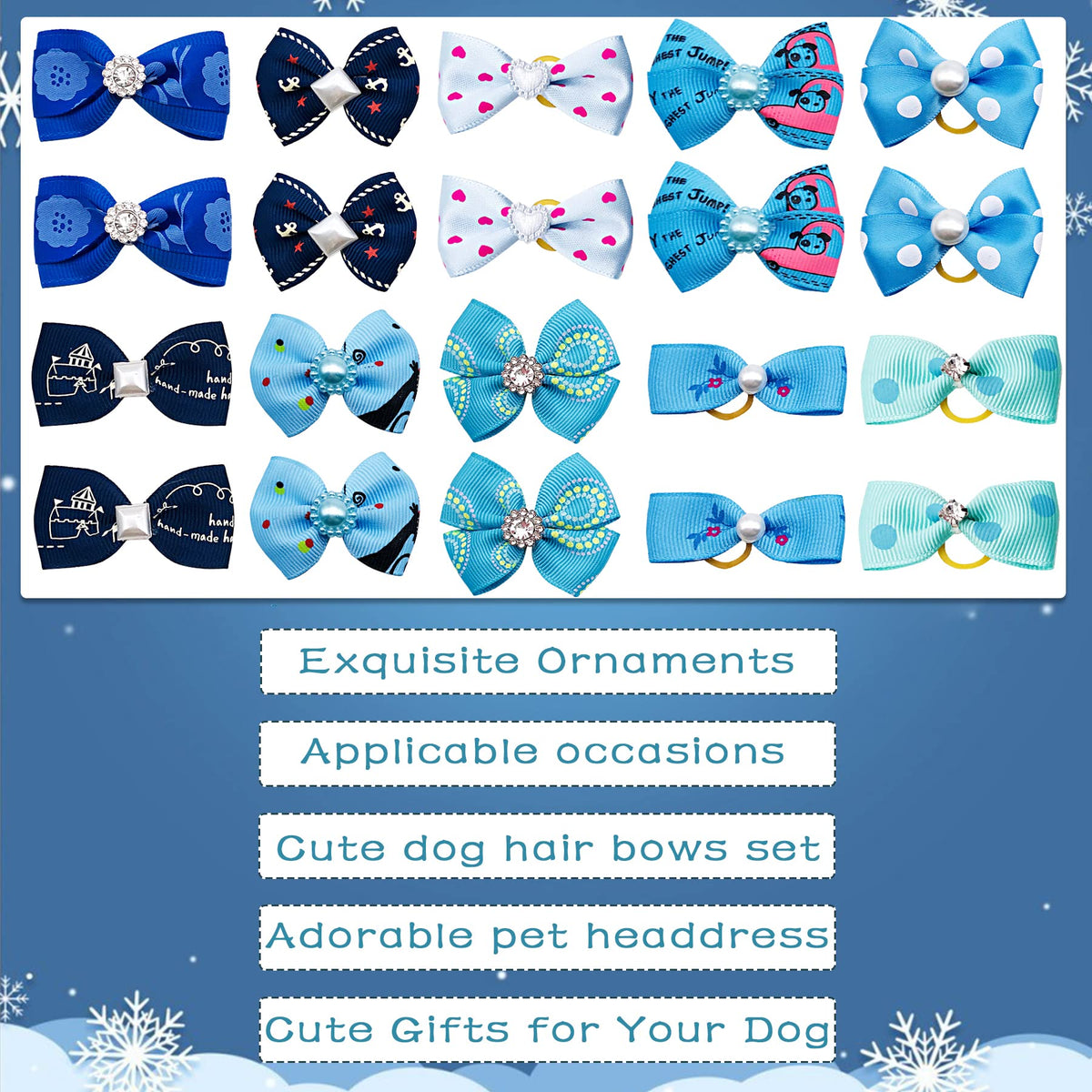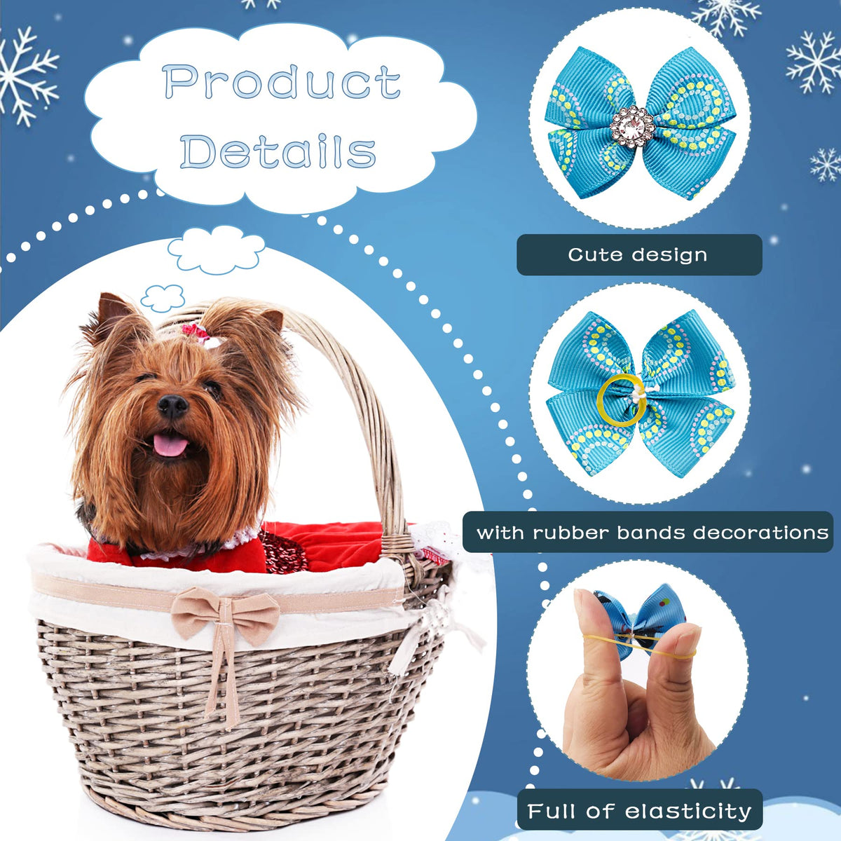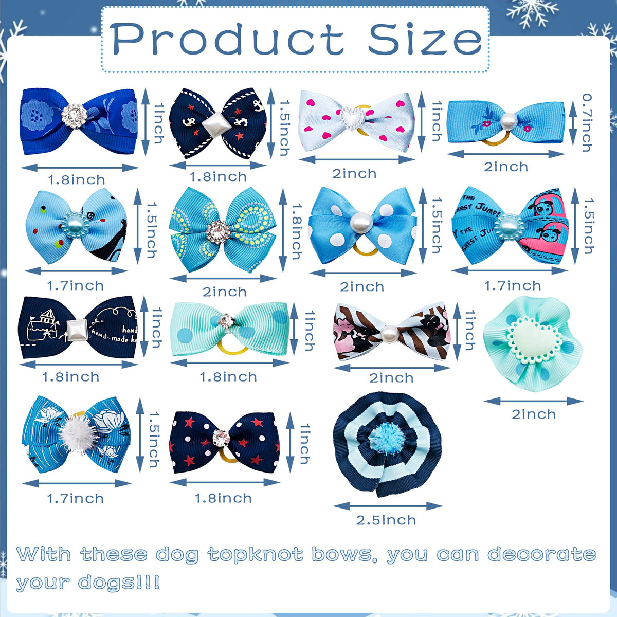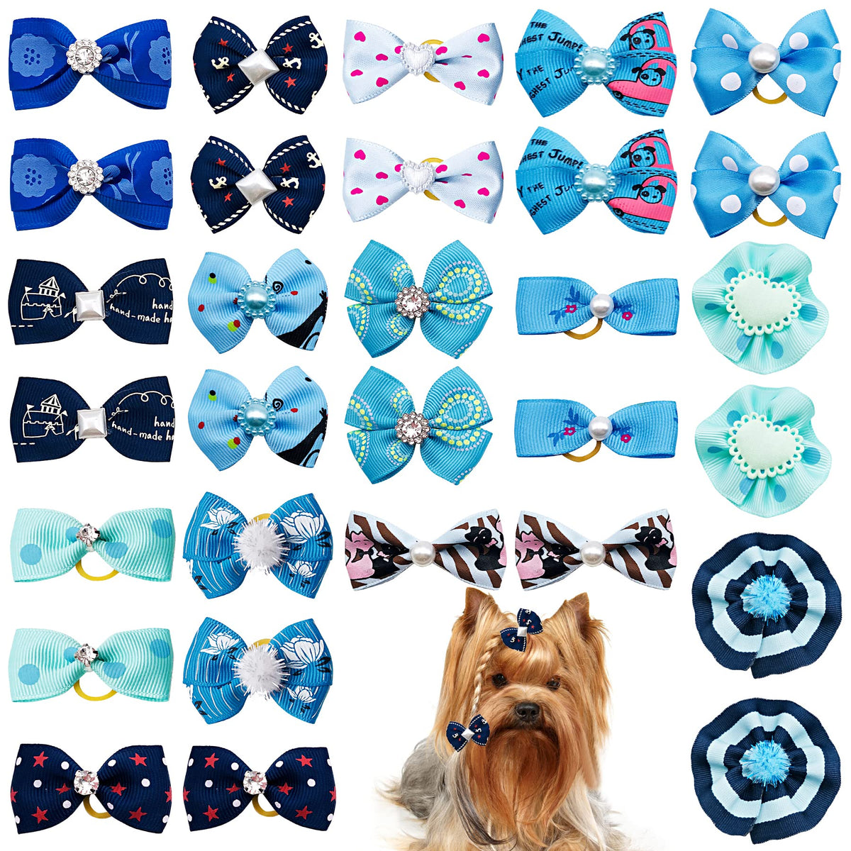 Jpgdn 30Pcs/15Pairs Blue Dog Hair Bows With Rubber Bands Puppy Hair Bowknot Top Knot Elastic For Girl Female Doggy Cat Rabbit Poodle Pet Animal Grooming Accessories Attachment