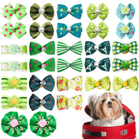 Jpgdn 30Pcs/15Pairs Green Dog Hair Bows With Rubber Bands Puppy Hair Bowknot Top Knot Elastic For Girl Female Doggy Cat Rabbit P
