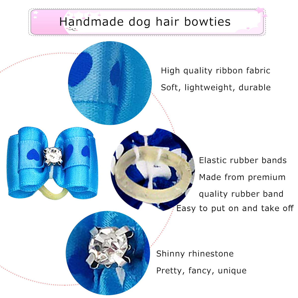 Jpgdn 50Pcs /25Pair Small Dog Hair Bows With Rubber Bands And Rhinestones Puppy Grooming Bows Doggies Cat Topknot Bowknot Pet Hair Accessories Color Random