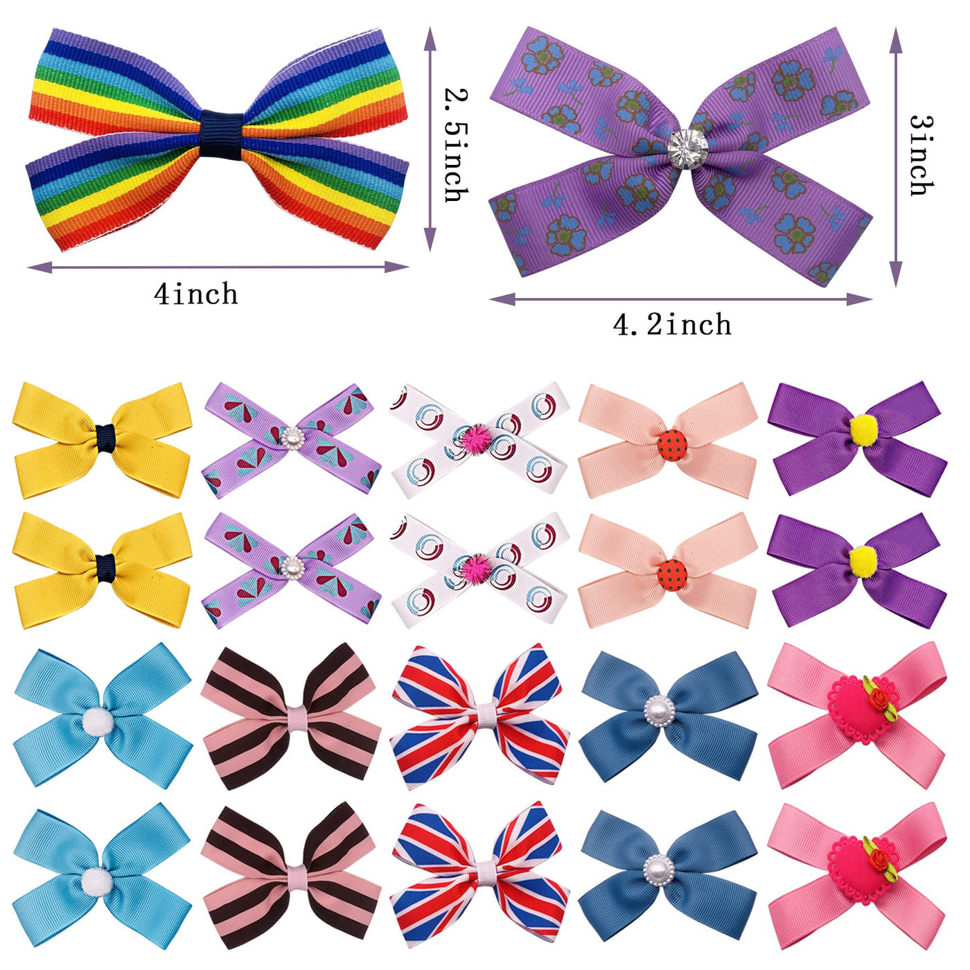 Dog Hair Bows For Large Dog Package: 50Pcs/25Pairs In Pack.The Styles And Designs Will Be Assorted Randomly. The Pictures Are Just For Reference.&Nbsp;Large Dog Hair Bows Sizes: About 4Inches. Suitable For Medium And Large Dog Cat Rabbits, Horse, Sheeps, American Girls And Dolls.Material: Made By High Quality Ribbon. The Rhinestone And The Faux Pearl Flowers Are Sticked On The Center Of The Bows. The Rubber Band On The Backside Is Strong Durable And Light Weight. Random Colors: The Different Colors Will Be Assorted Randomly For Boys And Girls. They Will Make Your Pets Look More Fashionable And Attractive. Occasions: The Dog Hair Bows Can Fit For Photo Shoot Costume, Take A Cute Picture Of Your Pet With It. Best Choice For Take Birthday, Holiday Party, Wedding Party And Daily Walking.