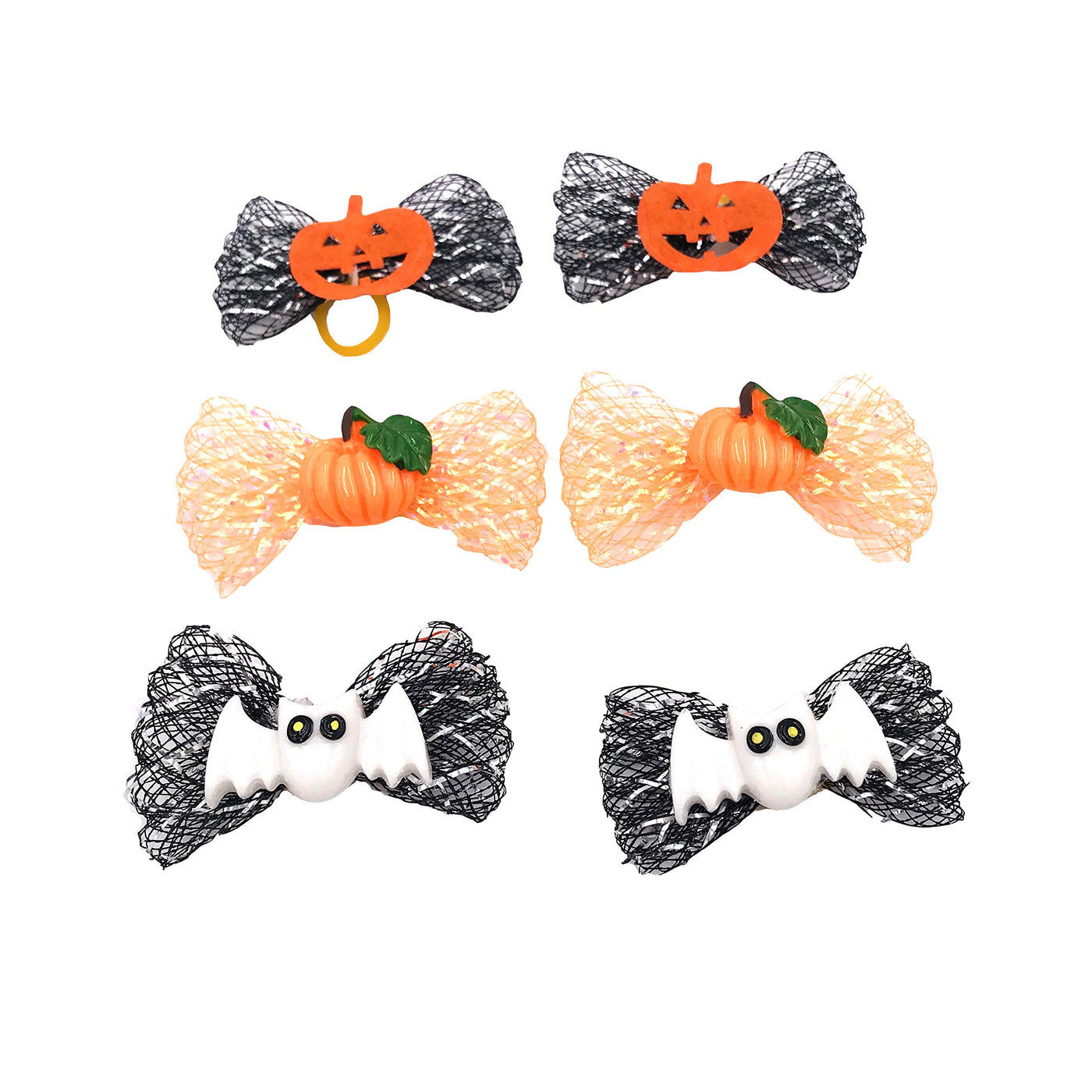 Jpgdn 50Pcs Halloween Small Dogs Hair Bows Puppy Hair Bow Ties With Pumpkin Skull Bat Ghost Rhinestone For Doggie Cat Kitten Rabbit Medium Pet Hair Flowers Bowknot Grooming Accessories Attachment