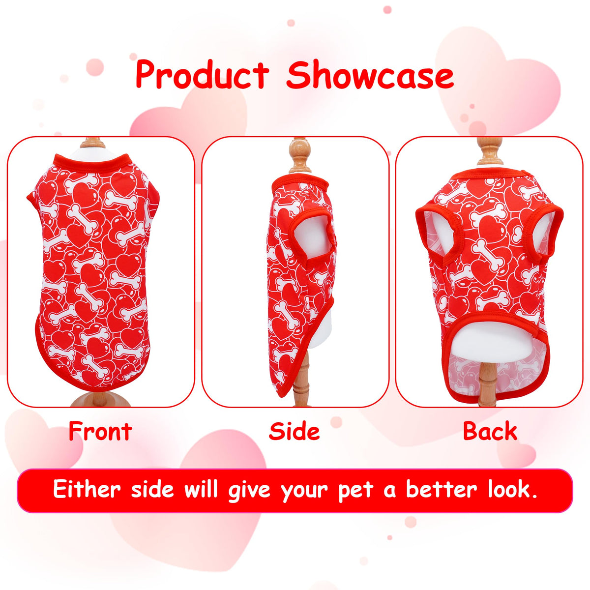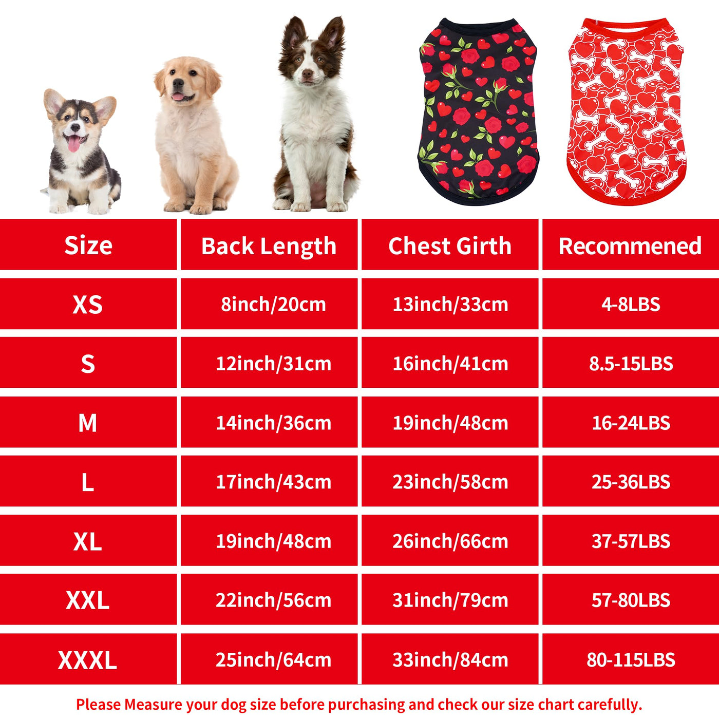 Valentines Dog Shirts&Nbsp;Package:You Will Receve 2Pcs/Pack&Nbsp;Sleeveless Valnetine&Nbsp;T Shirt Clothes In Black Red Color For Both Boy And Girl Male And Female Doggy Puppydog Shirts Size:There Are 7 Different Size From Xs S M L To Xl Xxl Xxxl For Choice. Please Measure The Chest Girth And Back Length Of Your Pet, And Refer To The Size Chart Before Ordering, And Note That Your Pet Usually Wearing A Small Size Does Not Mean That All Small Sizes Are Suitable For Him Or Her; If The Size Of The Pet Is Close To The Upper Limit Of The Size Chart, Please Choose A Larger Sizedog&Nbsp;T&Nbsp;Shirt Material:The Dog Cute Shirts Are Made Of Soft And Breathable Fabric With Nice Comfort, Coupled With A Smooth Surface To Touch, Providing Your Pet With Cosy And Comfortable Wearing Experiencevalnetine&Nbsp;Dog Shirts&Nbsp;Pattern: Our Dog Shirts Are Printed With Heart, Rose,Bone, Desgins, Full Of Festive Atmosphere, The Ideal Way To Dress Up Your Pet On Valnetine&Nbsp;Daywide Occasions: This Soft Puppy Shirts Can Be Worn For Daily Wear, Walking, Sports, Family, Travel, And Other Outdoor Activities, Suitable For Valentine Parties, Taking Photos And Vacations, Charming Apparel For Every Pet Wardrobe