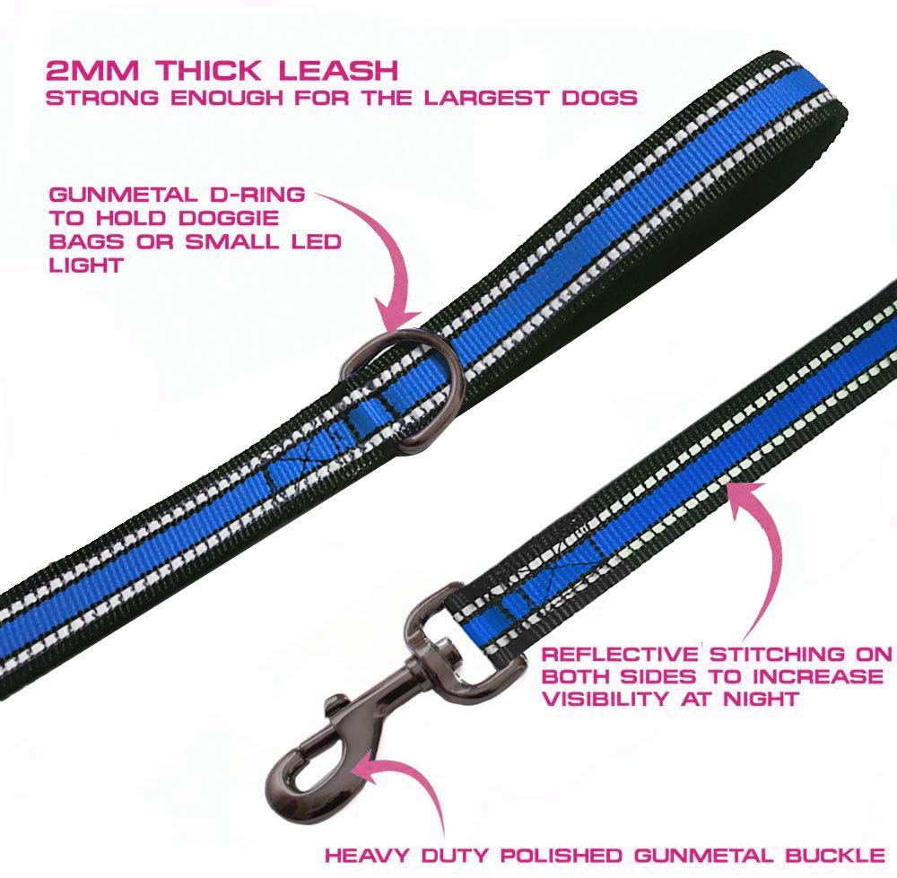 Jsxd Heavy Duty Double Handle Dog Leash - 5 Ft With Comfortable Padded And Reflective Rope, Suitable For Small, Medium, Large Do