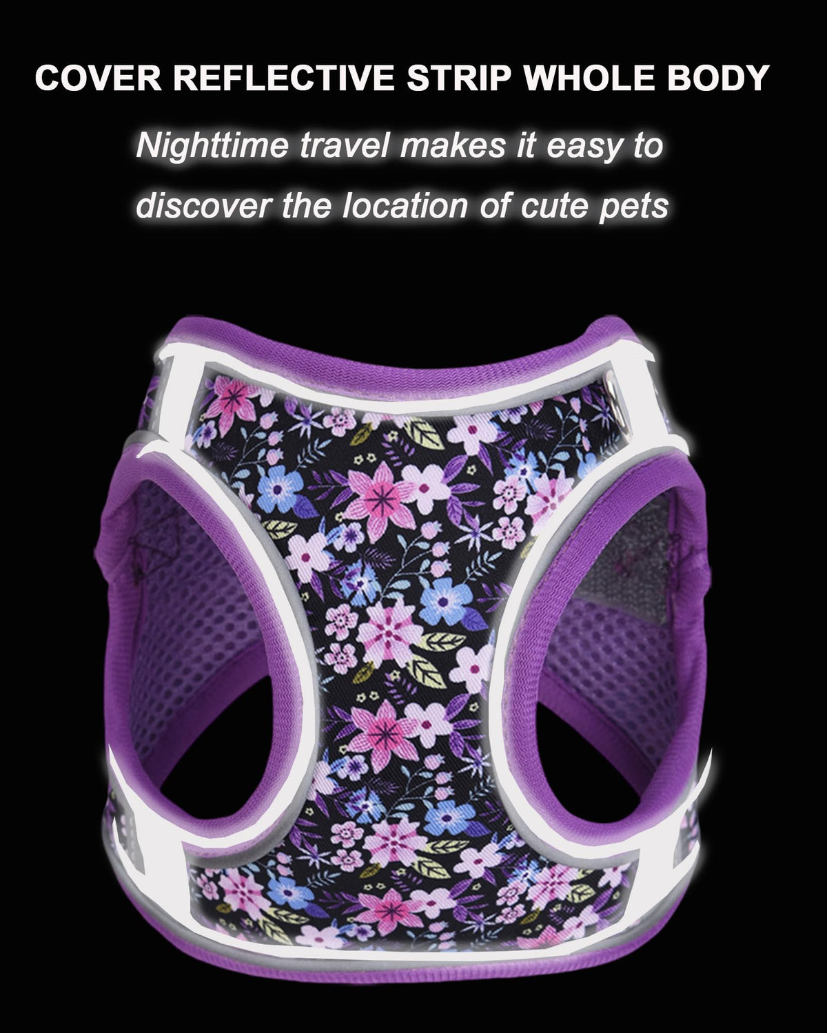 JUFOO S Purple Flower Pattern Dog Harness and Leash Set,No Escape Easy Walk Puppy Harnesses for Training Walking,Breathable Adju