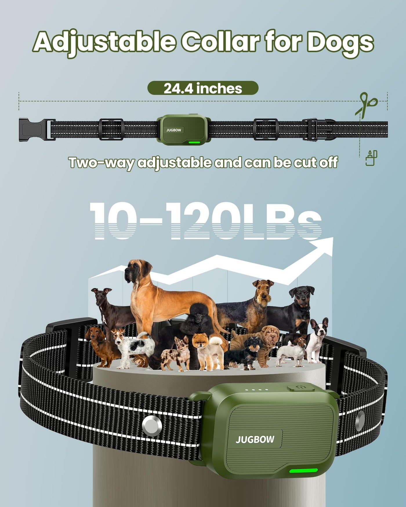 Q: Is this collar suitable for all dog sizes?A: Yes, the Jugbow Dog Shock Collar is designed to fit dogs weighing between 10 and 120 lbs and accommodates neck sizes ranging from 7.8 to 24.4 inches. Its adjustable strap ensures a comfortable fit for small, medium, and large dogs.
