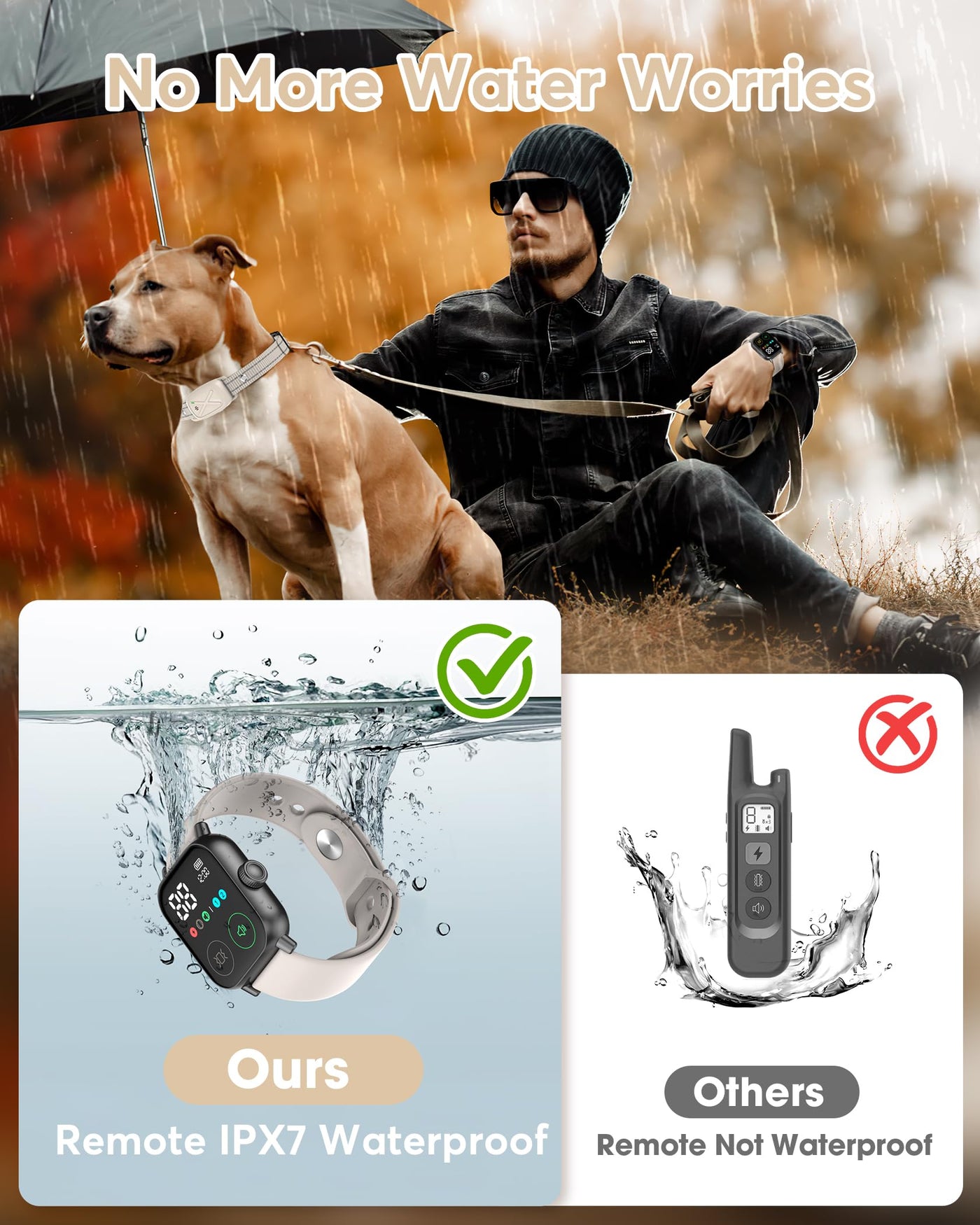 IPX7 Waterproof Design: Both the remote and collar are waterproof, enabling you to conduct training sessions in various weather conditions without fear of water damage.