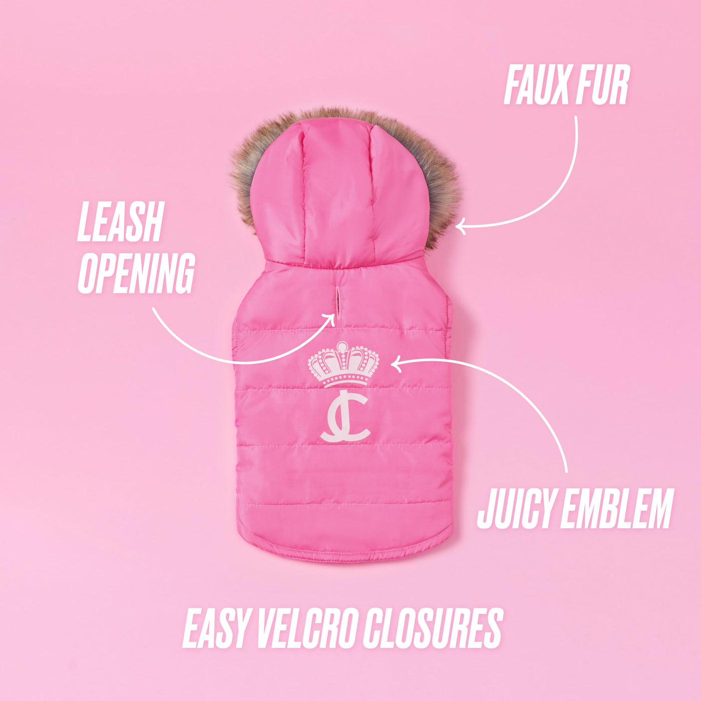 Elevate Your Pet'S Style And Warmth With The Juicy Couture Crown Puffer Hooded Pet Jacket. Designed By The La Lifestyle Brand Known For Casual Glamour, This Pet Jacket Embodies Their Unique Spirit. Keep Your Furry Friend Cozy During Cold Weather With The Faux Fur Hood While Ensuring Easy On-And-Off Convenience. Whether You'Re Looking For Dog Cold-Weather Gear Or Fashionable Pet Attire, This Hooded Pet Outfit Has Got You Covered. Embrace Winter In Style, And Let Your Pet Enjoy A Touch Of Couture In Their Everyday Adventures.
