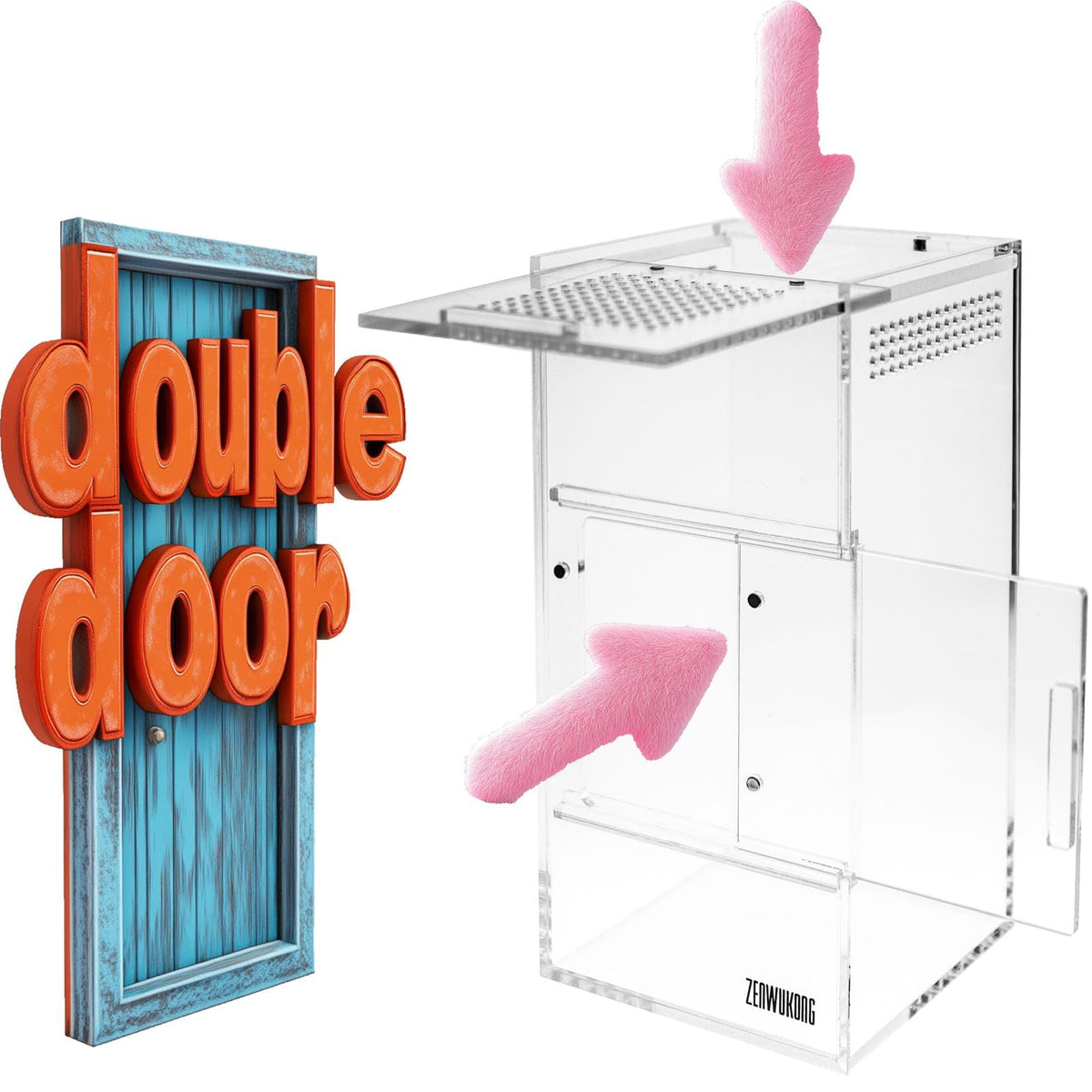 This 3X3X6 Inch Enclosure Is Perfect For Jumping Spiders, Tarantulas, Snail, Mantis, Lizard, And Other Small Reptiles And Amphibians, Providing A Safe, Secure, And Comfortable Habitat. Its Easy-Access Dual Sliding Doors And Secure Locking System Make Handling And Maintenance A Breeze While Ensuring The Safety Of Your Pets. The Design Includes Smaller Ventilation Holes On The Top And Sides To Allow For Proper Airflow And Prevent Escapes, Making It Ideal For Micro-Sized Creatures. Made From High-Quality, Clear Acrylic, This Enclosure Offers A 360-Degree View, Letting You Observe Your Pets From Every Angle, Enhancing The Experience Of Interacting With Your Jumping Spider Or Other Small Creatures. Ready To Use Right Out Of The Package, This Stackable, No-Assembly Design Is Perfect For Both Beginners And Experienced Pet Owners, Offering An Easy-To-Store Solution For Multiple Enclosures. Whether You'Re A Passionate Arachnid Enthusiast Or A Curious Beginner, This Terrarium Provides A Naturalistic, Secure, And Engaging Environment For Your Pets To Thrive.
