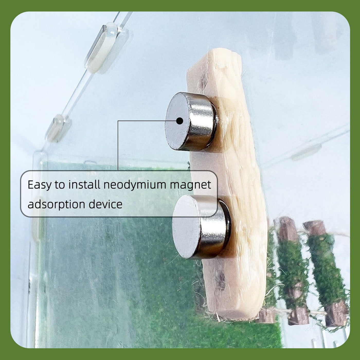??? Strong magnets embedded inside ensure the installation does not affect the aesthetics preventing accidental falls. The installation is very simple and suitable for use as a decorative accessory for small animal enclosures.