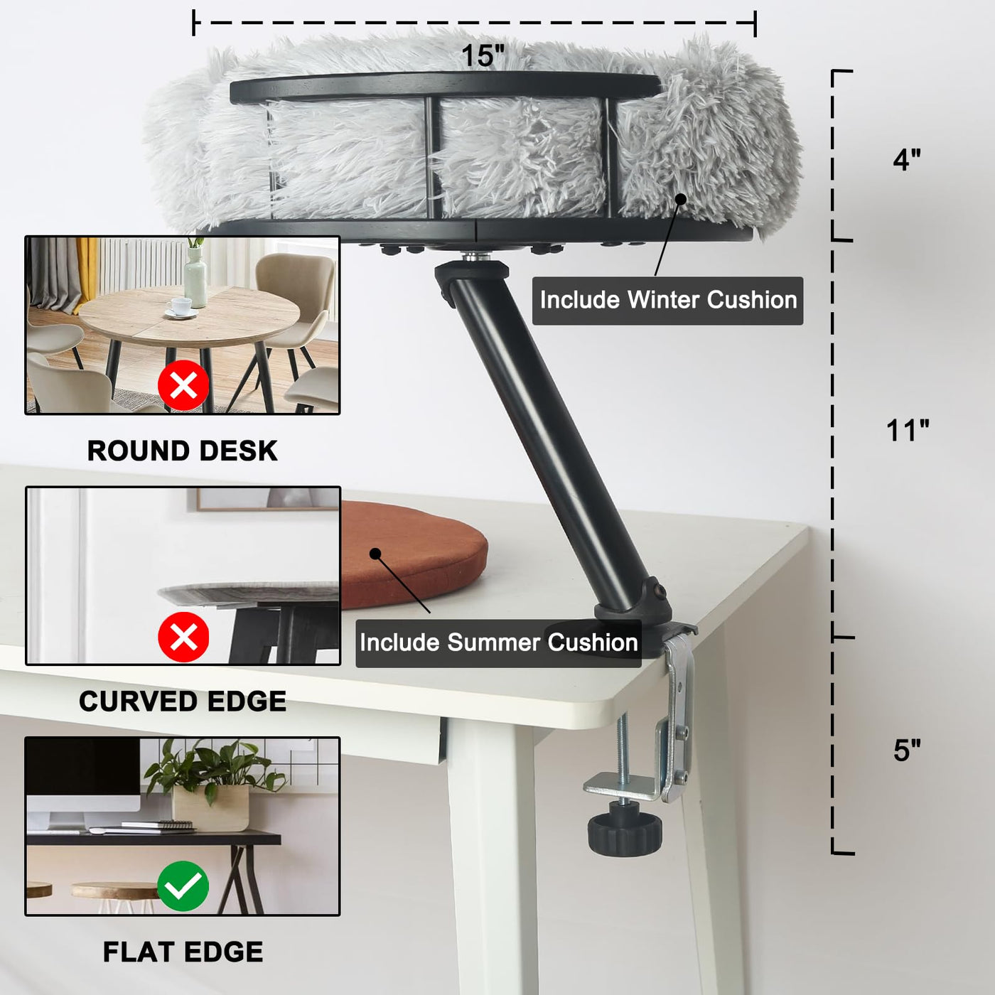 Juopool Cat Desk Bed - Desktop Attachment Cat Perch For Home Office, Spinnable Indoor Mounted Desk Bed, Elevated Nest For Work,