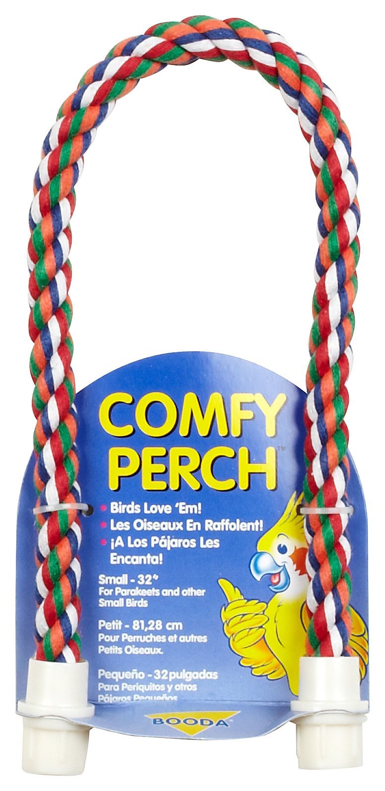 Product Description Jw Pets Comfy Perch Is A Versatile Rope Perch That Provides Entertainment And Exercise For Pet Birds Of All Sizes These Flexible Bird Perches For Parrots Are Easy To Bend And Twist Into A Variety Of Creative Shapes, Allowing Pet Parents To Keep Birds Stimulated With Different Perch Styles Modifying The Bird Cage With Perch Variations Promotes Exercise And Improves Birds Grip Strength As They Climb A Variety Of Perch Shapes The Bright Colors Attracts Birds To The Perch And The Soft, Curved Rope Provides Gentle Support For Birds Feet For Long-Term Joint Health Plastic, Easy-Twist Attachments Ensure Convenient Placement In Bird Cages And Allow Pet Parents To Install The Rope Horizontally Or Vertically The Jw Pet Comfy Perch Is Available In Three Sizes And Offered In A Variety Of Lengths And Widths To Accommodate Smaller Birds Like Budgies, Parakeets, And Cockatiels Or Larger Birds Like African Grey Parrots, Cockatoos, And Macaws Com Booda Comfy Perch For Birds, Sm 21 Inch, Colors Varyyour Bird Will Love The Shapes, Bright Colors & Feel Of The Comfy Perch It Is Bird Breeder Recommended To Provide The Different Perching Surfaces & Levels Birds Need In Their Environment Along With Color Enrichment It Helps Relieve Cage Stress, Boredom & Related Feather Picking Comfy Perch Allows You To Have Fun Creating Different Types Of Perches For Your Birds Depending On The Length Of The Cable, You Can Create Loops, Curves & Other Interesting Shapes