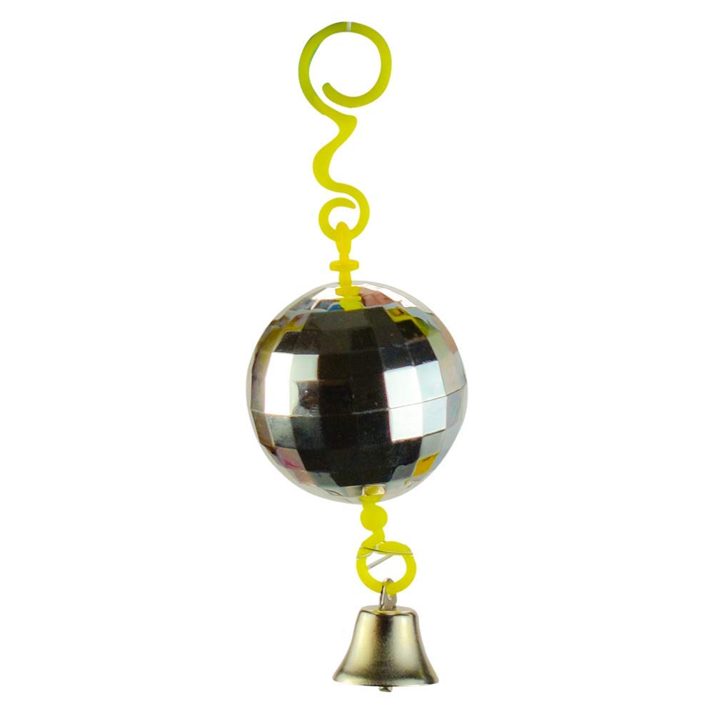 This retro disco ball toy will have your bird grooving with the beat. The disco ball activity is covered in tiny reflective squares that give it a mirror effect that small birds love! great for parakeets, cockatiels and similar sized birds.