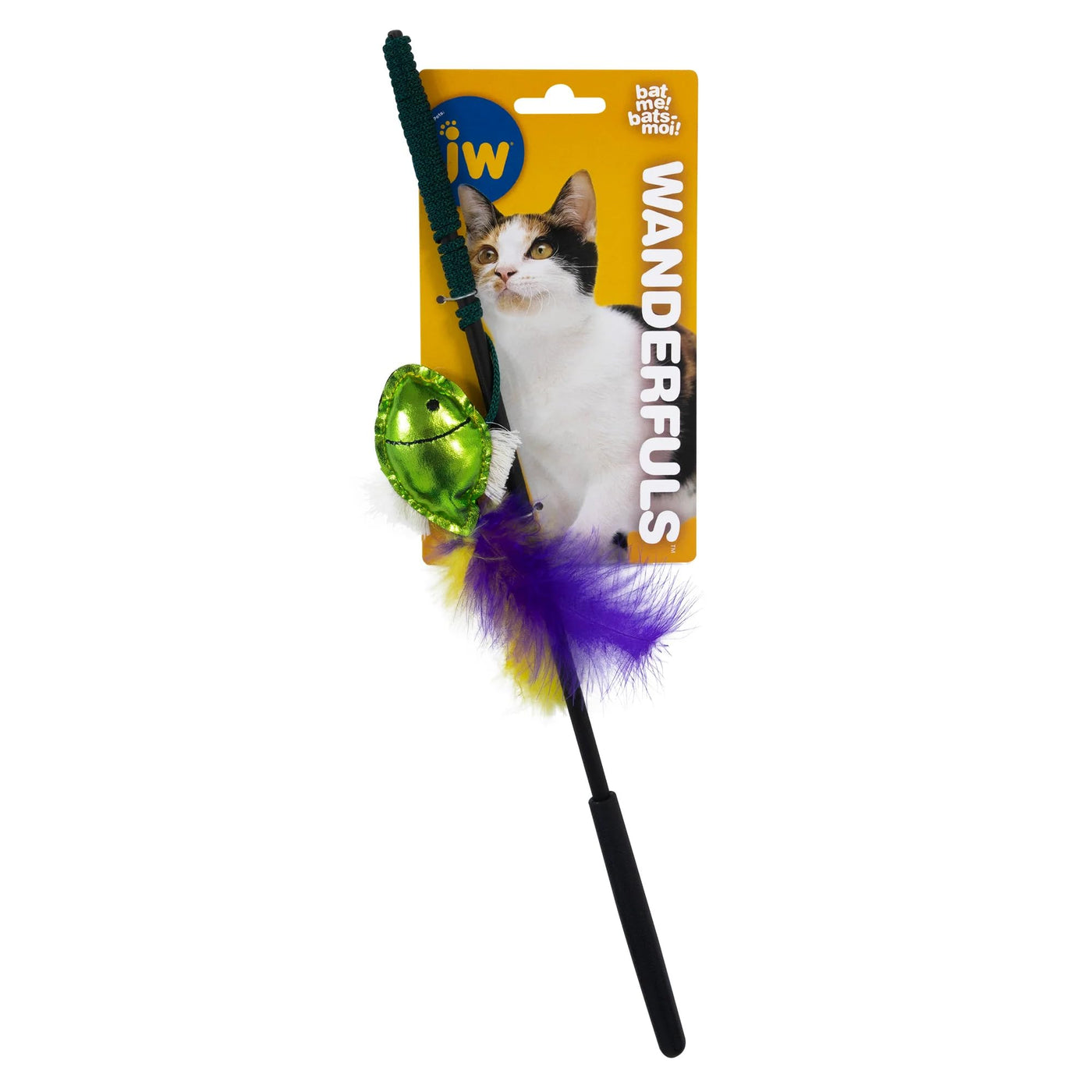 The cataction wanderfuls by JW pet company is an interactive cat wand with whimsical creatures attached to a long stick that you and your cat will love to play with together. With feathers and catnip and bright fun designs JW keeps your cat healthy with toys that promote exercise and mental stimulation. Following the tradition of superior pet toys JW pet-exercising a cat's body and mind.
