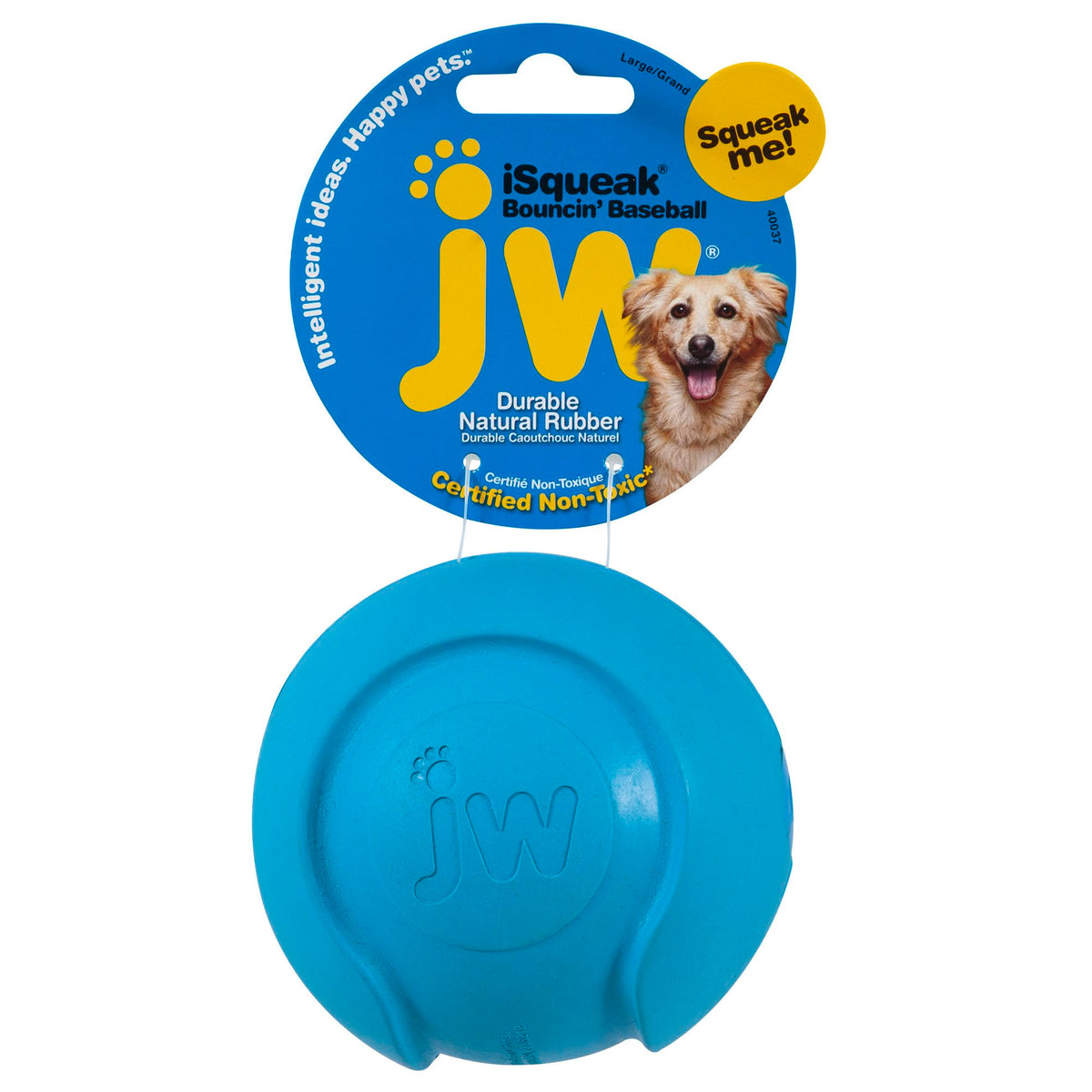 The new iSqueak Bouncin Baseball Large is a squeaky durable natural rubber ball. This sporty toy is meant to be tossed, passed, carried, and chewed. Available in fun bright colors, this size baseball is suited for large and giant breed canine athletes.