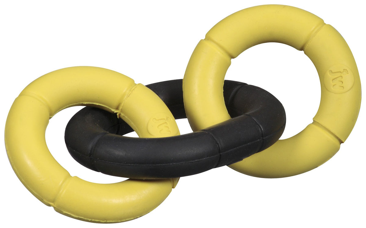 Invincible Chains is made up of three durable rings composed of natural resilient rubber. JW's patented molding process links each ring together with no seams and no glue to produce a strong long lasting toy. Tug toss fetch and chew the Invincible Chain will provide hours of fun for your dog. Excellent for small and toy dog breeds.