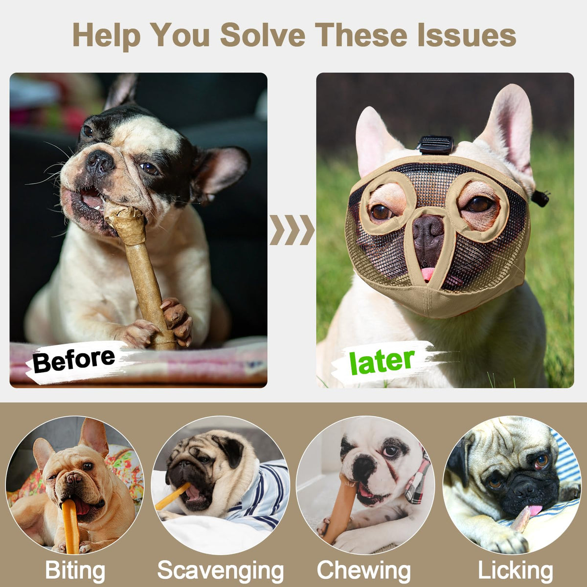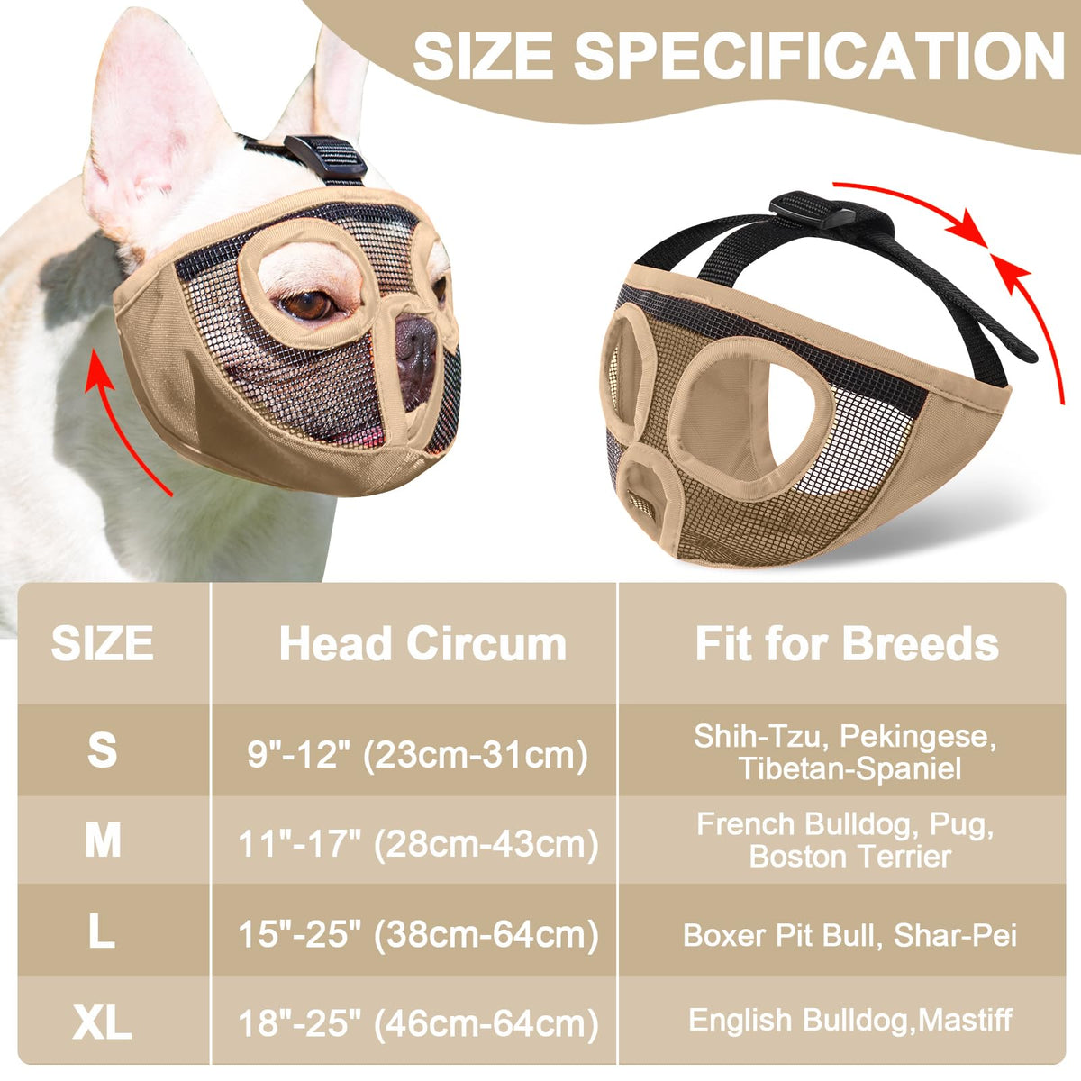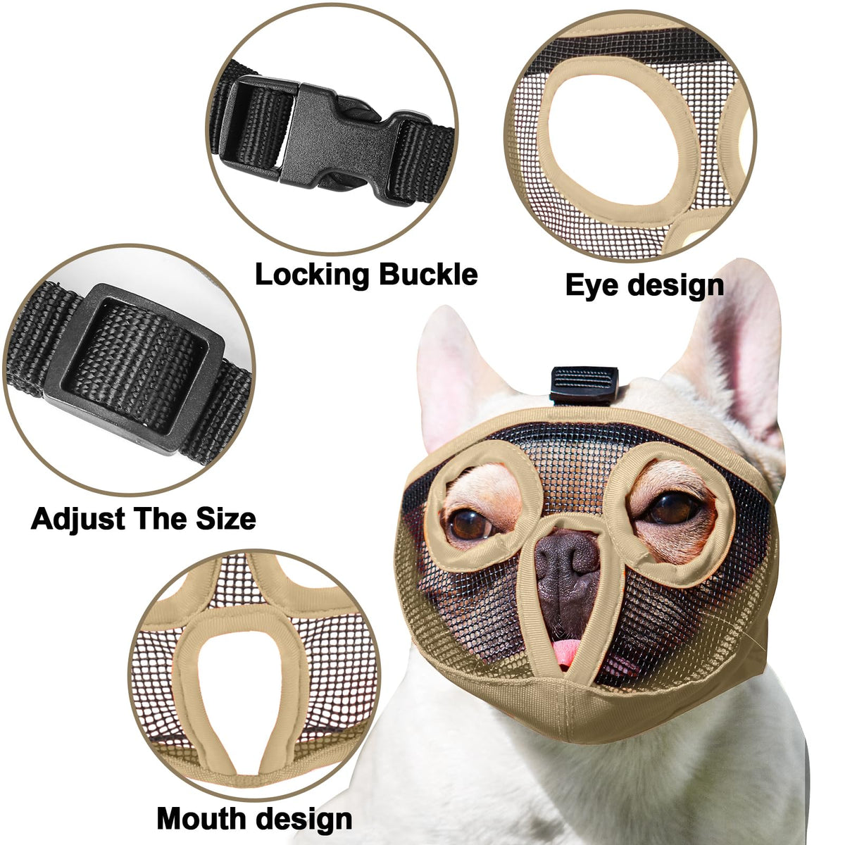 Jyhy Short Snout Dog Muzzles- Adjustable Breathable Mesh Bulldog Muzzle For Biting Chewing Licking Training Grooming Dog Mask (K