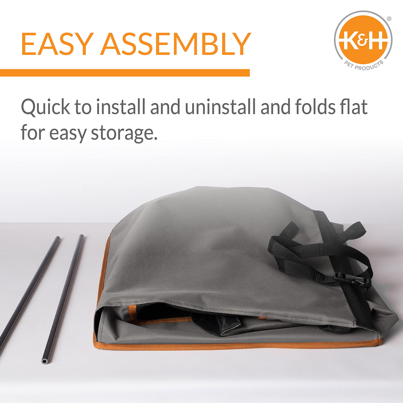 Q: What features make the K&H Dog Car Seat safe for my pet?A: The K&H Dog Car Seat features front and back straps that loop around headrests and a lead that attaches to your pet's harness. This design securely tethers your dog, ensuring their safety while allowing them to enjoy the view through the mesh windows.