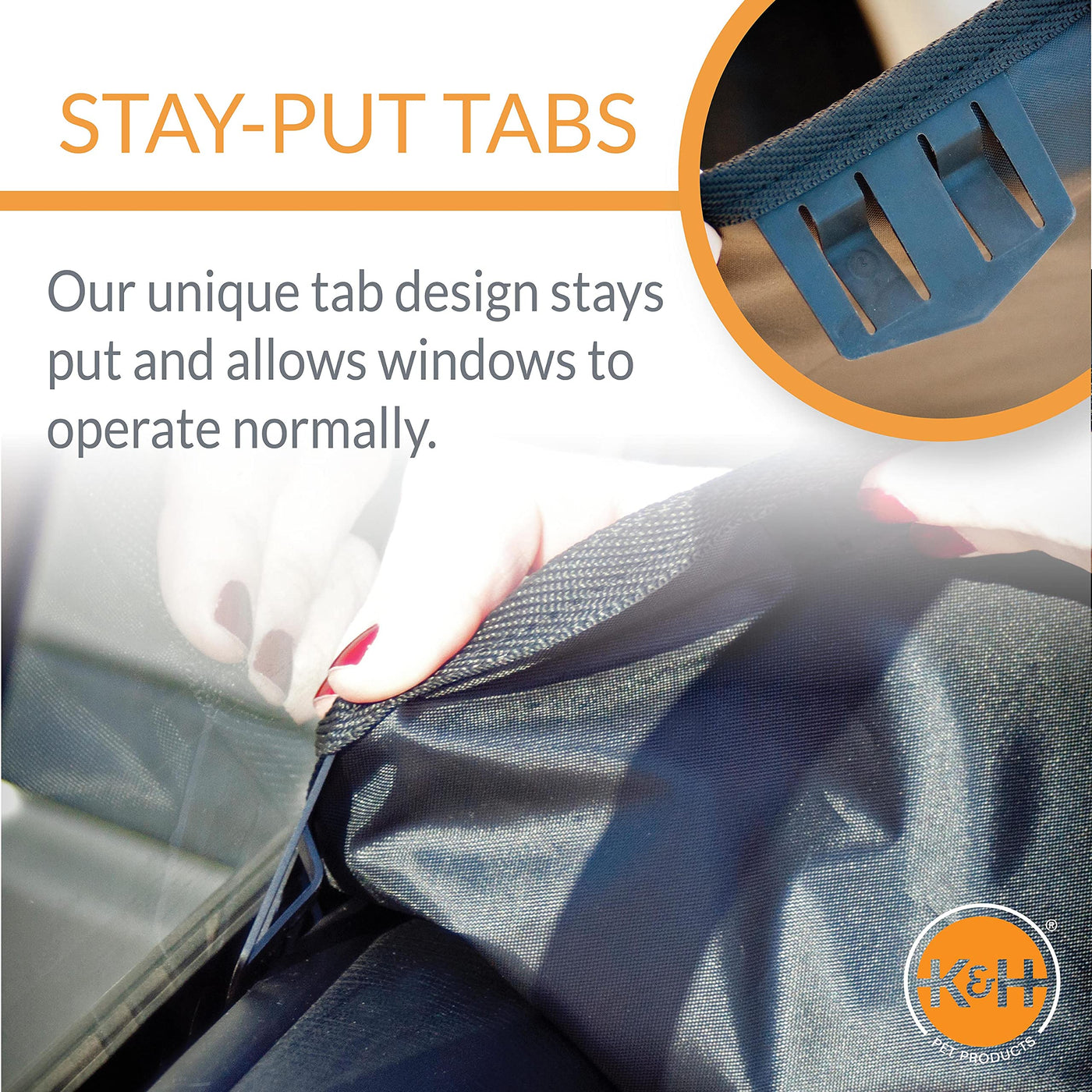 Protect vehicle doors from dirt and scratches with the patent-pending K&H Vehicle Door Protector; from the stay-put tabs to the rugged construction, it’s sure to get the job done. Our unique tab design stays put when operating windows, which is the most common complaint from other brands. The function, design, quality… It’s what we’re all about. Includes 1 right and 1 left door protector. Fits front or rear car, SUV, or truck windows. One-year limited warranty. NOTE: Windows should be rolled up while the vehicle is in motion as wind may blow the item out of the vehicle. Never leave a pet in an unattended vehicle. Not for use with aftermarket window tinted windows.