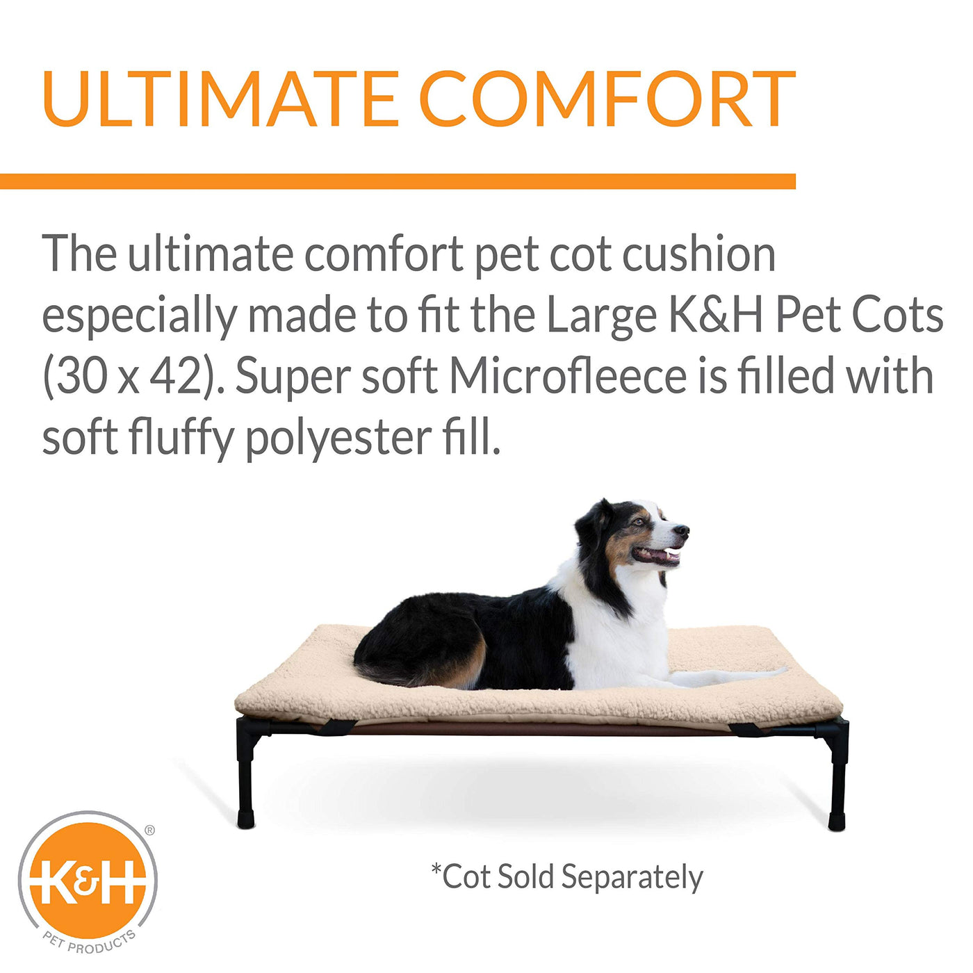 K&H Pet Products Dog Cot Pad (Cot Sold Separately), Pillow-Top Comfort Bed For K&H Large Elevated Dog Beds, Soft & Fluffy, Secure Fit Straps, Machine Washable, Portable - Large 42 X 30In Tan Fleece